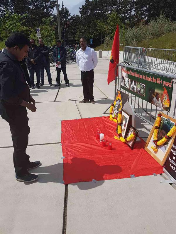 நெதர்லாந்து தமிழர் பேரவையால் நடத்தப்படட கவனயீர்ப்பு நிகழ்வானது பொதுச்சுடரேற்றலுடன், ஈகைச்சுடரேற்றல் அகவணக்கத்துடன் சுடர், மலர் வணக்கம் செலுத்தப்பட்டது.