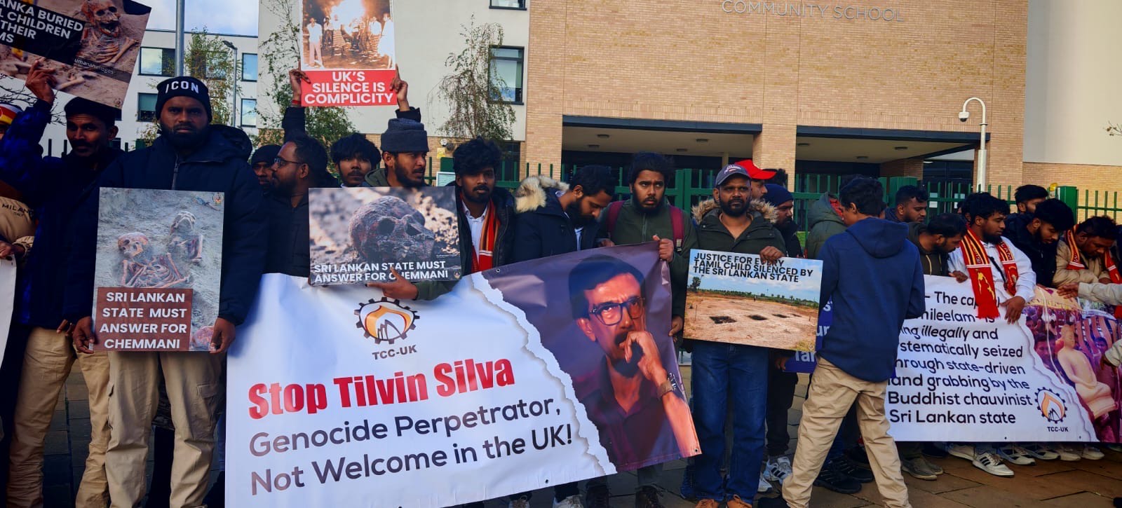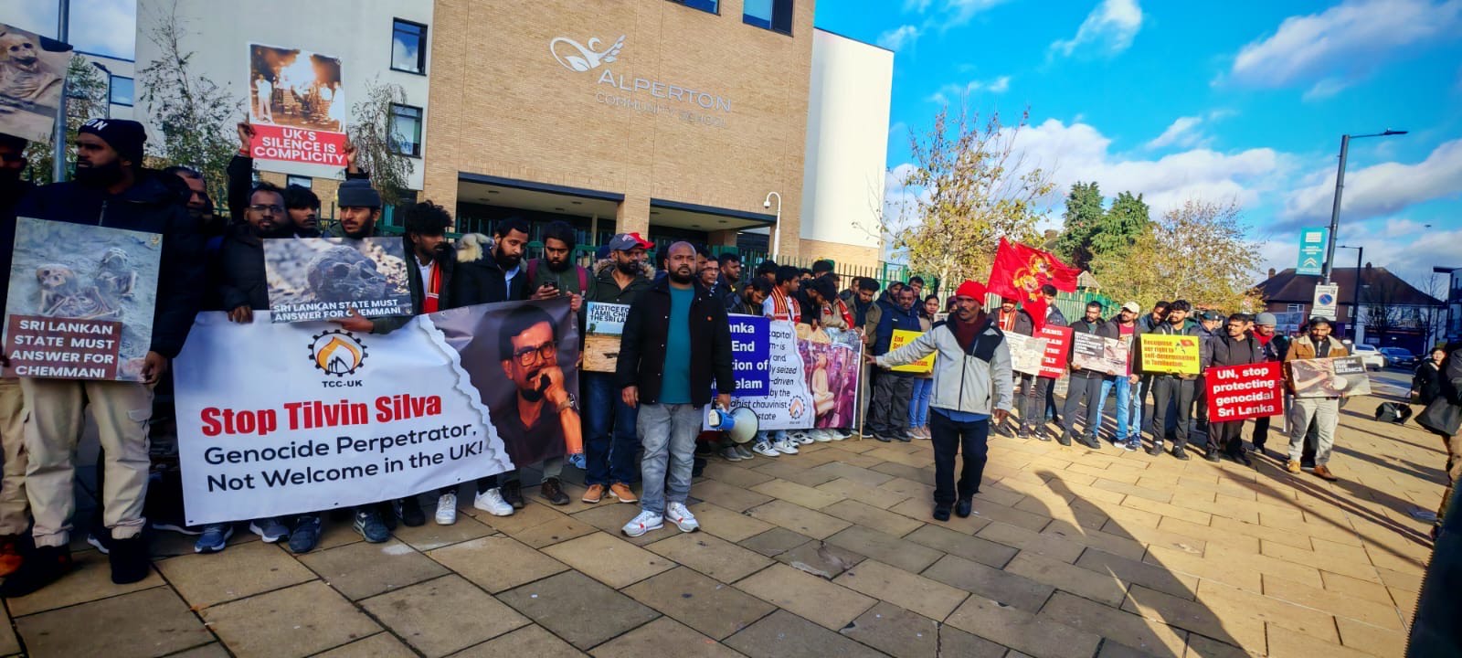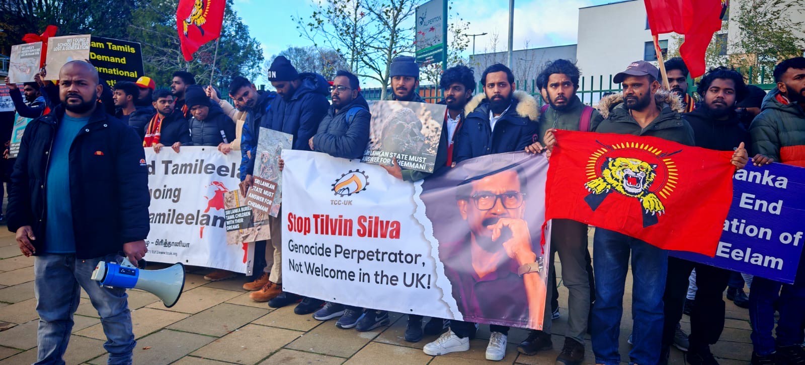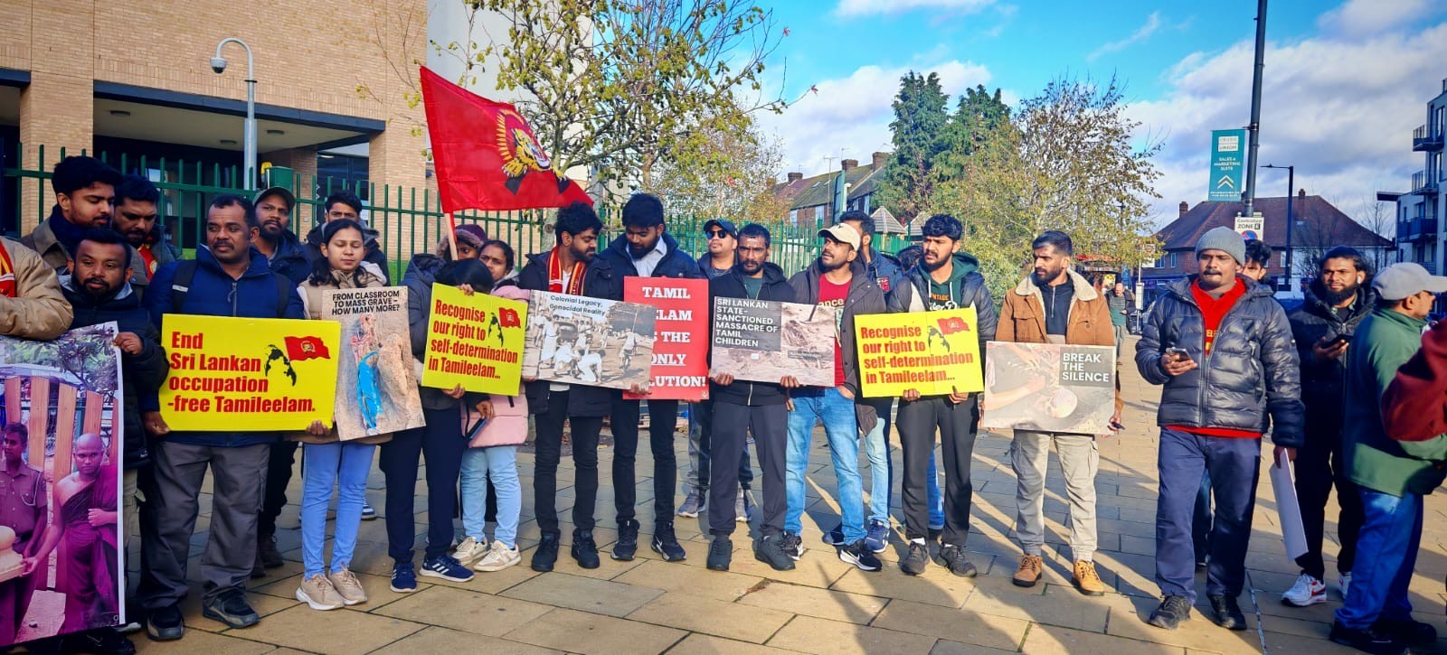 தமிழீழத்தின் தலைநகரமான திருகோணமலையில் சிங்கள–பெளத்த பேரினவாதிகளால் ஆக்கிரமிக் ப்பட்டு வரும் பிரதேசங்களைக் காக்க இந்த போராட்டமானது பிரித்தானிய அல்பேட்டன் பாடசாலை முன்பாக நடைபெற்றது. பேரினவாத அரசியலின் முகமாகக் கருதப்படும் ரில்வின் சில்வாவின் (JVP–NPP) பிரித்தானிய வருகைக்கு எதிராக கடும் கண்டனக் குரல்கள் எழுப்பப்பட்டன.