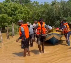 இவ்வாறு வெள்ளத்தில் இருந்து விமானம் ஊடாக மீட்கப்பட்டவர்களை சீனாபே விமான படைதளத்திற்கும் சேருவல மகாவலி விளையாட்டு மைதானத்திற்கும் கொண்டுவரப்பட்டனர்.