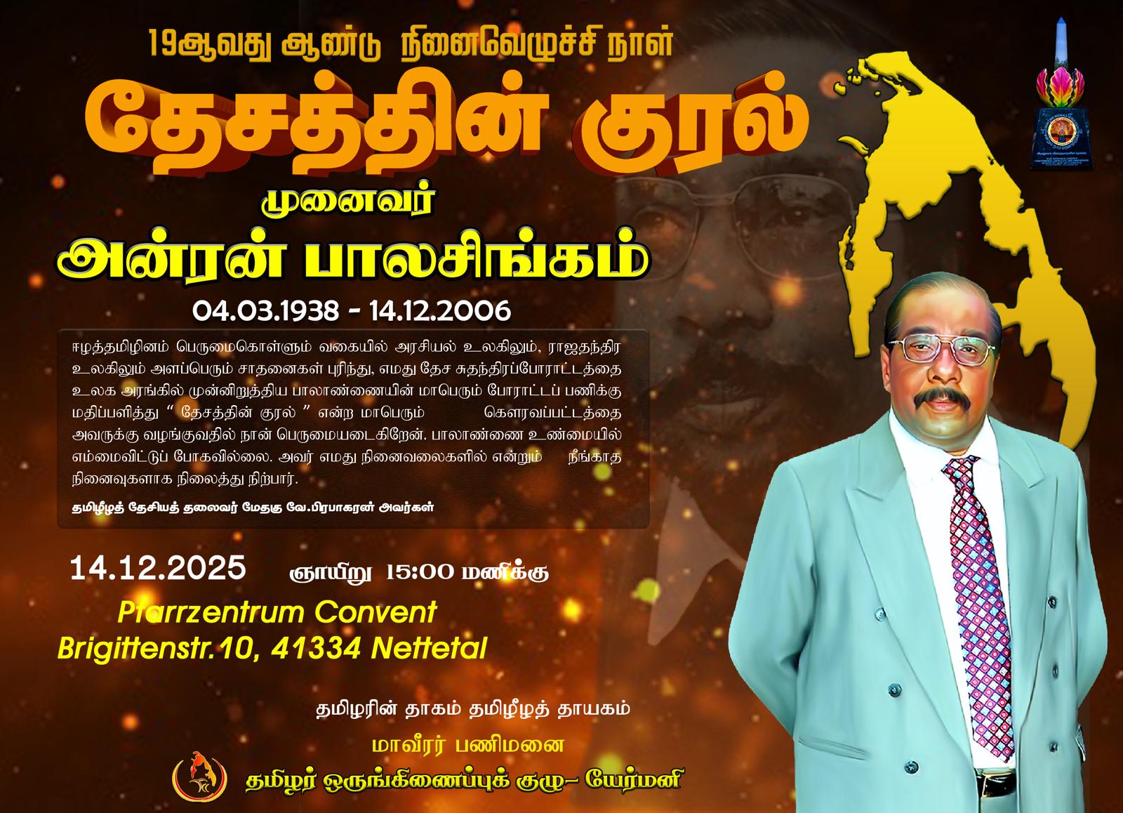 - தேசத்திக் குரல் அன்ரன் பாலசிங்கம் அவர்களின் 19ஆவது நினைவெளிச்சி நிகழ்வு-யேர்மனி