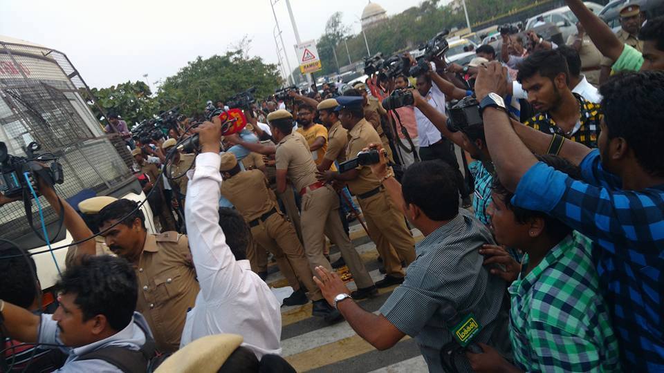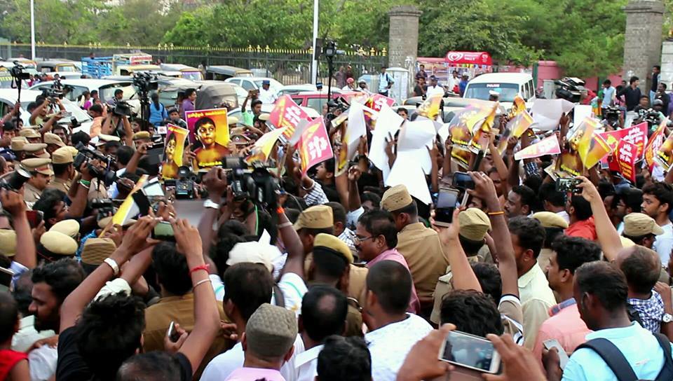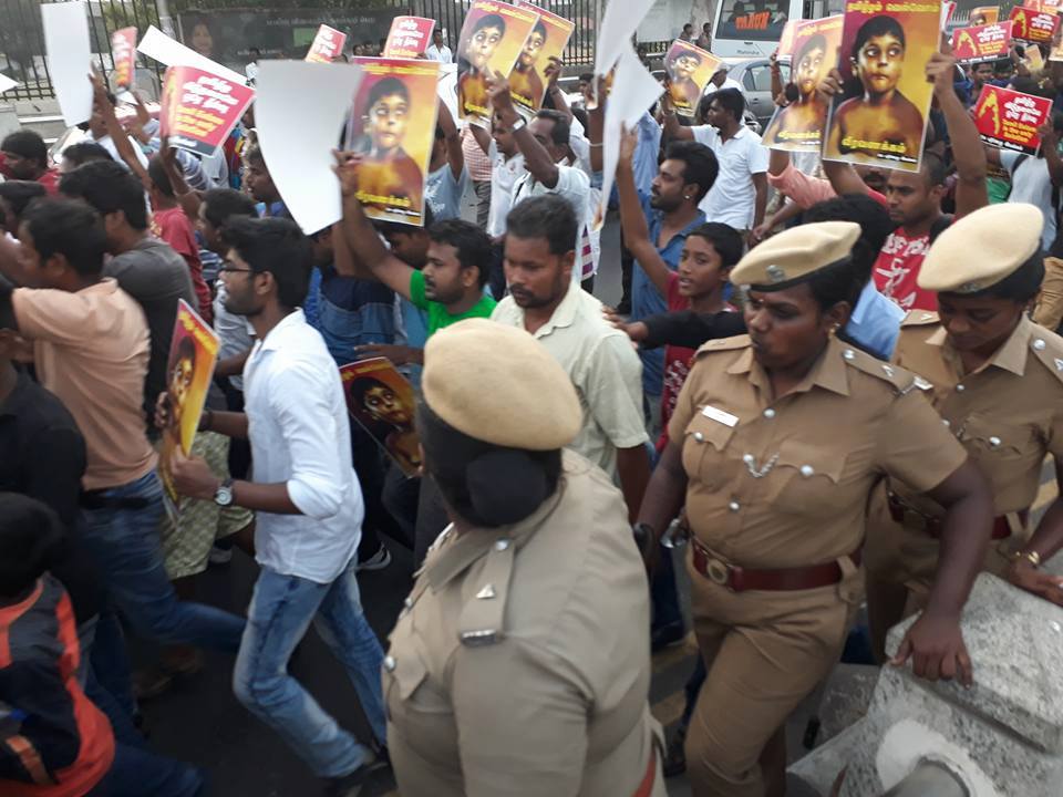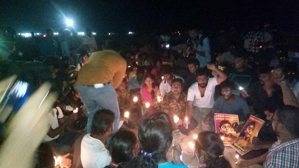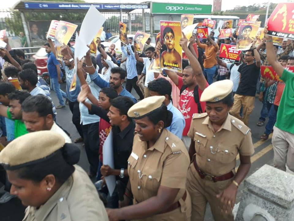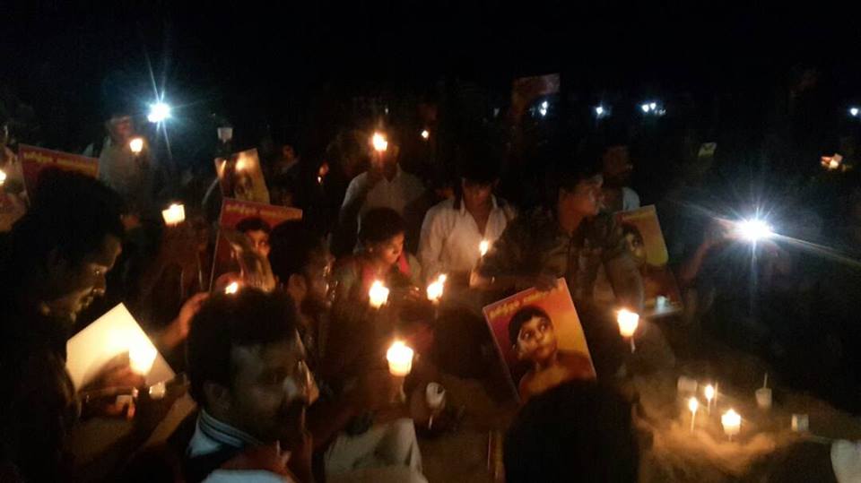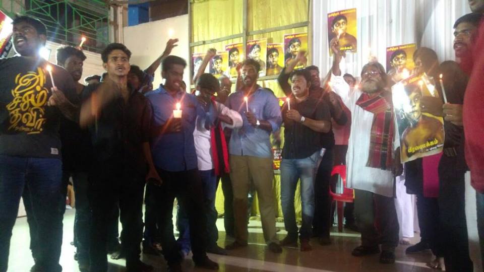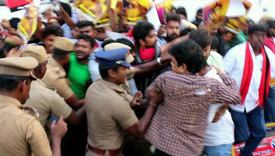 ஒரு அமைதியான மெழுகுவர்த்தி ஏந்தி அஞ்சலி செலுத்தும் நிகழ்ச்சியில் காவித்துறையாக மாறிய தமிழக காவல்துறை வன்முறையையும், தாக்குதலையும் நிகழ்த்தி தோழர்களை கைது செய்துள்ளது. ஏற்கனவே ஜல்லிக்கட்டு போராட்டத்தில் வாகன்ங்களுக்கு தீவைத்து வெறியாட்டம் நடத்தியதை நாம் அறிவோம். மீண்டும் தனது கோர முகத்தினை இன்று காட்டியுள்ளது.