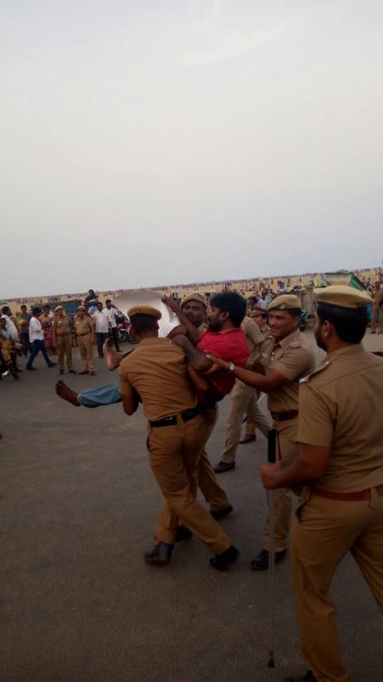 தனித்தனியாக கூடிய அனைத்து மக்களையும் கைது செய்து பேருந்துகளில் ஏற்ற ஆரம்பித்தது. கடும் நெருக்கடிகளை தாண்டி மே பதினேழு இயக்கத் தோழர்கள் கடற்கரை சாலையில் நினைவேந்தலை தொடங்கிய போது, காவல்துறை சூழ்ந்து கொண்டு அனைவரையும் இழுத்துத் தள்ள ஆரம்பித்தது. மே பதினேழு இயக்கத்தின் தோழர்களை தனிப்பட்ட முறையில் குறிவைத்துத் தாக்கத் தொடங்கியது.