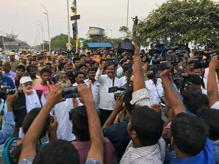அனைத்து தோழர்களையும் இழுத்துச் சென்று வண்டியில் ஏற்றிய போது, மே பதினேழு இயக்க ஒருங்கிணைப்பாளர் திருமுருகன் காந்தி உள்ளிட்ட 34 தோழர்களை தனிப் பேருந்தில் ஏற்றி தனி இடத்திற்கு இட்டுச் சென்றது.