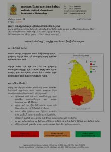 இன்று (13) பிற்பகல் 12.30 மணிக்கு வெளியிடப்பட்ட இந்த எச்சரிக்கை இரவு 11.00 மணி வரை செல்லுபடியாகும் என்று தெரிவித்துள்ளது.