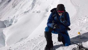 இவர் சீனாவின் ஆக்கிரமிப்பில் உள்ள திபெத் பகுதியில் இருந்து எவரெஸ்ட் சிகரம் மீது ஏறினார். நேற்று முன்தினம் இவர் மட்டும் பாறைகளை பிடித்து தனியாக ஏறினார்.