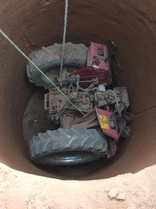 முல்லைத்தீவு கேப்பாபுலவு மாதிரிக்கிராமத்தில் கிணறு வெட்டும்போது உழவுஇயந்திரம் கிணற்றுக்குள் வீழ்ந்துள்ளது.