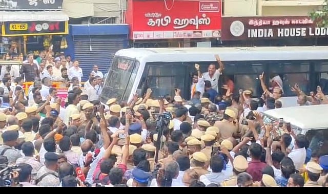 இதையடுத்து, தடையை மீறி ஆர்ப்பாட்டம் நடத்த வந்த அண்ணாமலை உட்பட 500-க்கும் மேற்பட்டோரை போலீஸார் இன்று கைது செய்தனர். அப்போது பொது மக்களிடையே அண்ணாமலை பேசியது: “நியாயமான கோரிக்கைக்காக போராட்டம் நடத்தக் கூட போலீஸார் அனுமதிக்கவில்லை. இதுதான் ஜனநாயகமா? பெண்களை பாலியல் வன்கொடுமை செய்தவர்கள் தைரியமாக சுற்றுகிறார்கள். ஆனால், மக்களுக்காக போராட்டம் நடத்த அனுமதி கிடைப்பதில்லை. அரசின் தவறான உத்தரவுகளை காவல் துறை பின்பற்றக் கூடாது.