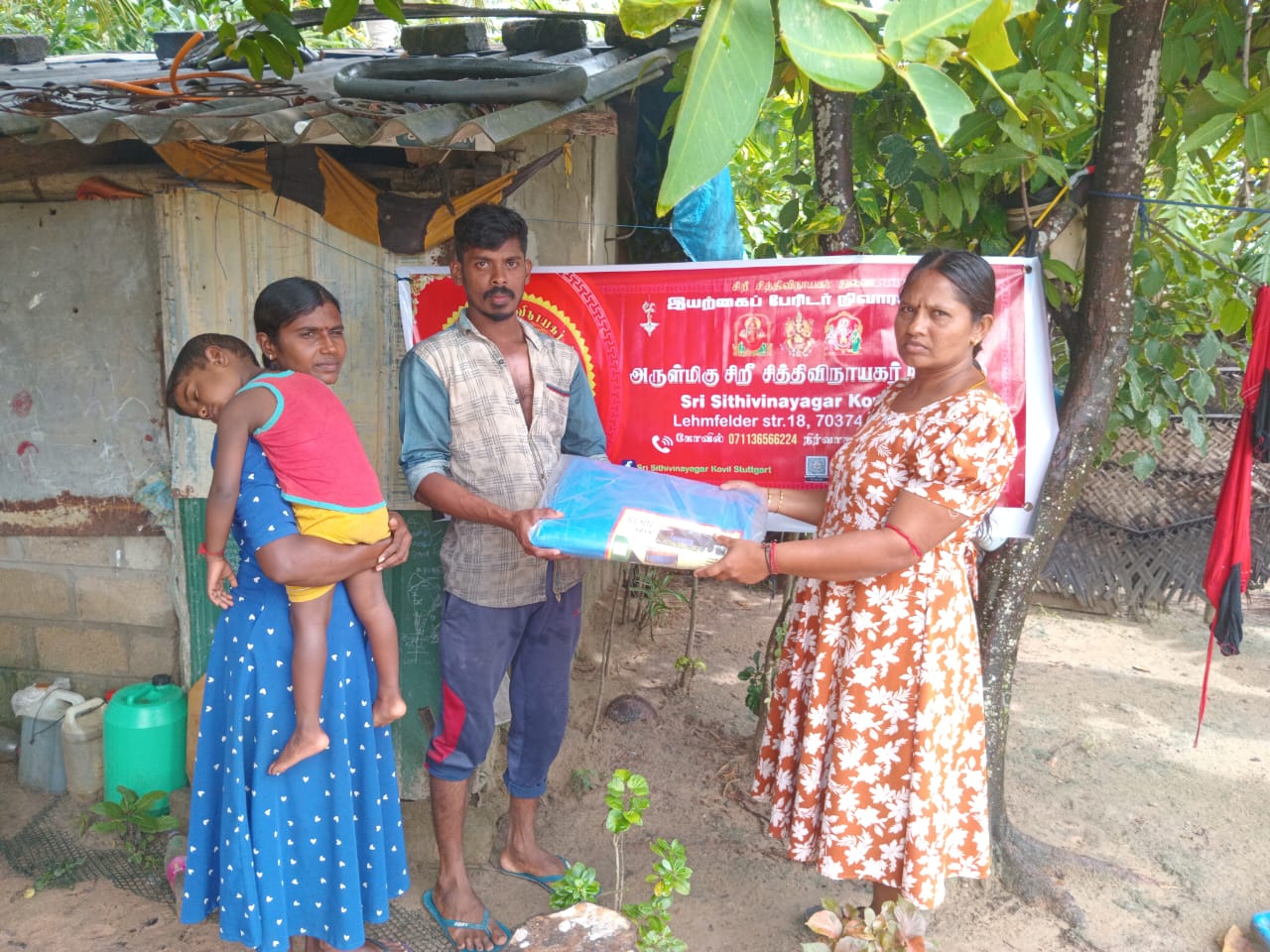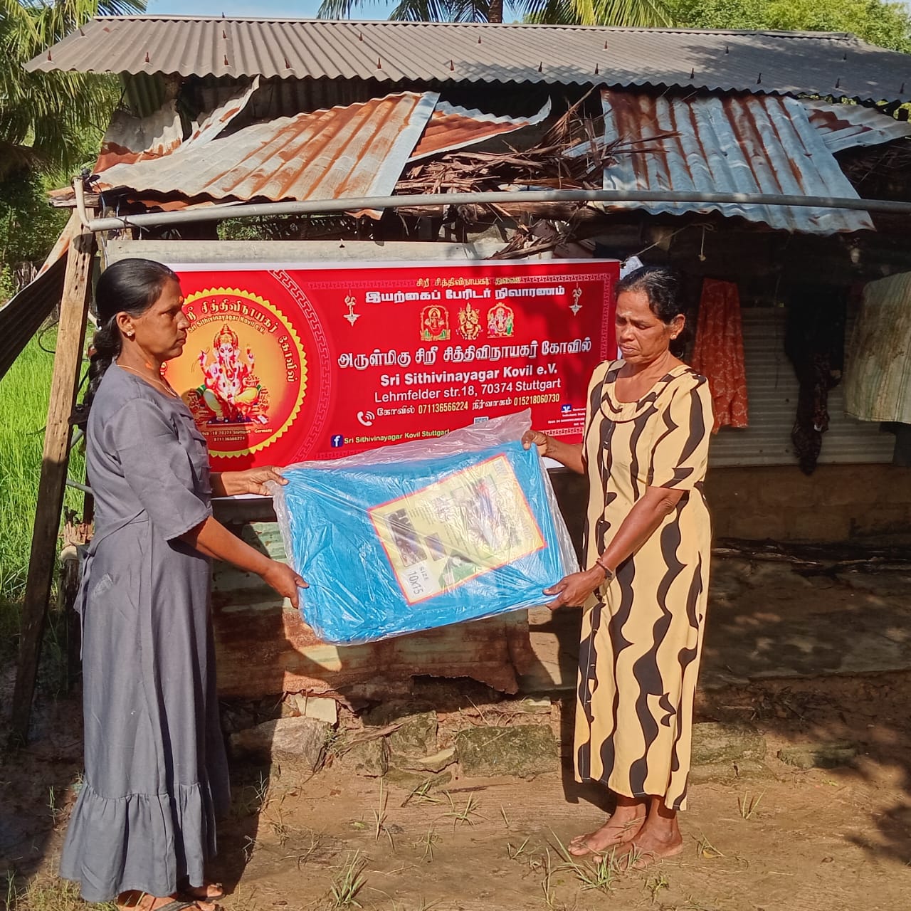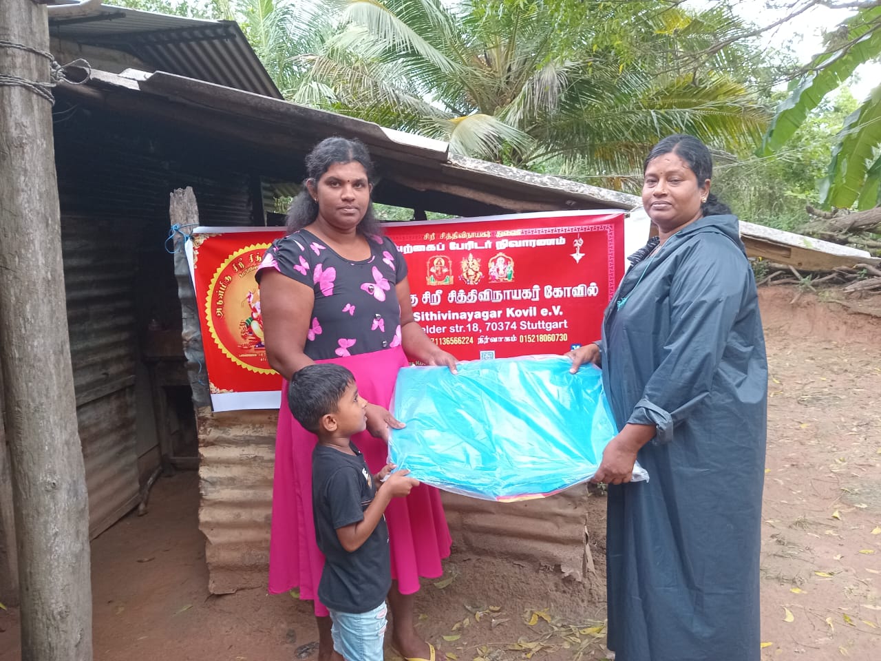 இயற்கைப் பேரிடரினால் பாதிக்கப்பட்ட எம் உறவுகளிற்கு, 23/12/2025 அன்று யேர்மனி சித்திவினாயகர் கோயில் நிர்வாகத்தினரின் பேராதரவோடு முல்லைத்தீவு மாவட்டத்தில் தற்காலிக குடிசைகளில் வாழும் மூங்கிலாறு, கைவேலி, குரவயல் கிராமங்களைச் சேர்ந்த 15 குடும்பங்களுக்கு கூரை விரிப்புக்கள் வழங்கிவைக்கப்பட்டன. இவ்வுதவியினை வழங்கிய யேர்மனி சித்திவினாயகர் கோயில் நிர்வாகத்தினருக்கு முல்லைத்தீவு மக்கள் தங்கள் மனம்நிறைந்த நன்றியினைத் தெரிவித்துள்ளனர்.