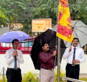 கடற்றொழில் அமைச்சர் இராமலிங்கம் சந்திரசேகரன் குடை பிடித்தவாறு தேசியக்கொடி ஏற்றிய விவகாரமானது சர்ச்சையை ஏற்படுத்தியுள்ளது.