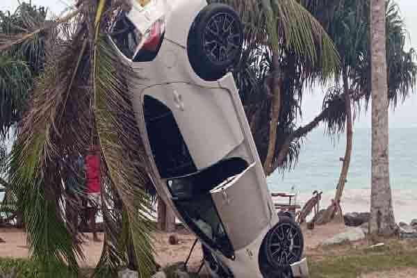 கார் சாலையை விட்டு விலகி சாலையோரத்தில் இருந்த தென்னை மரத்தில் மோதி பின்னர் மரத்தின் அடிப்பகுதியில் விழுந்ததாக பொலிஸார் தெரிவித்தனர்.