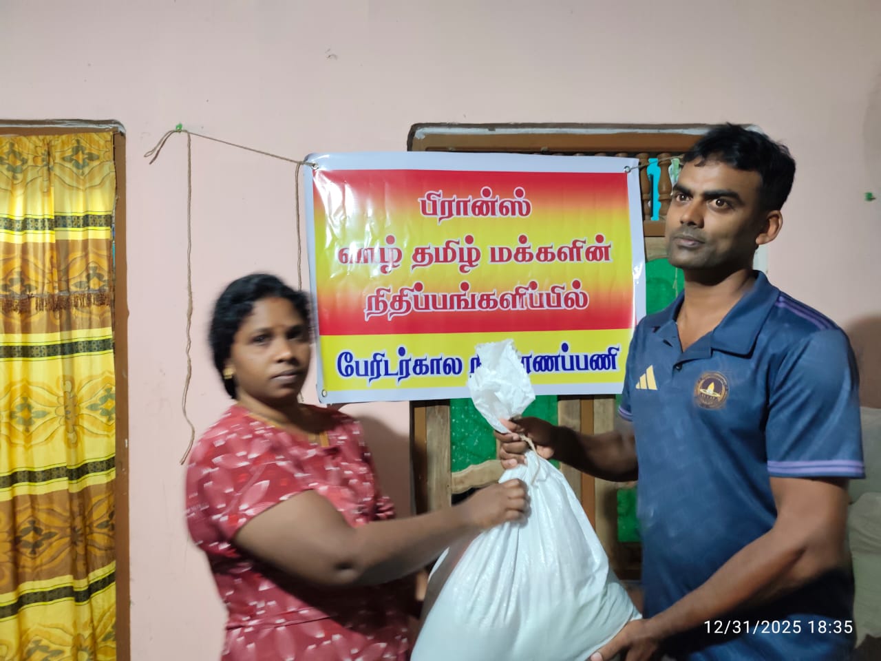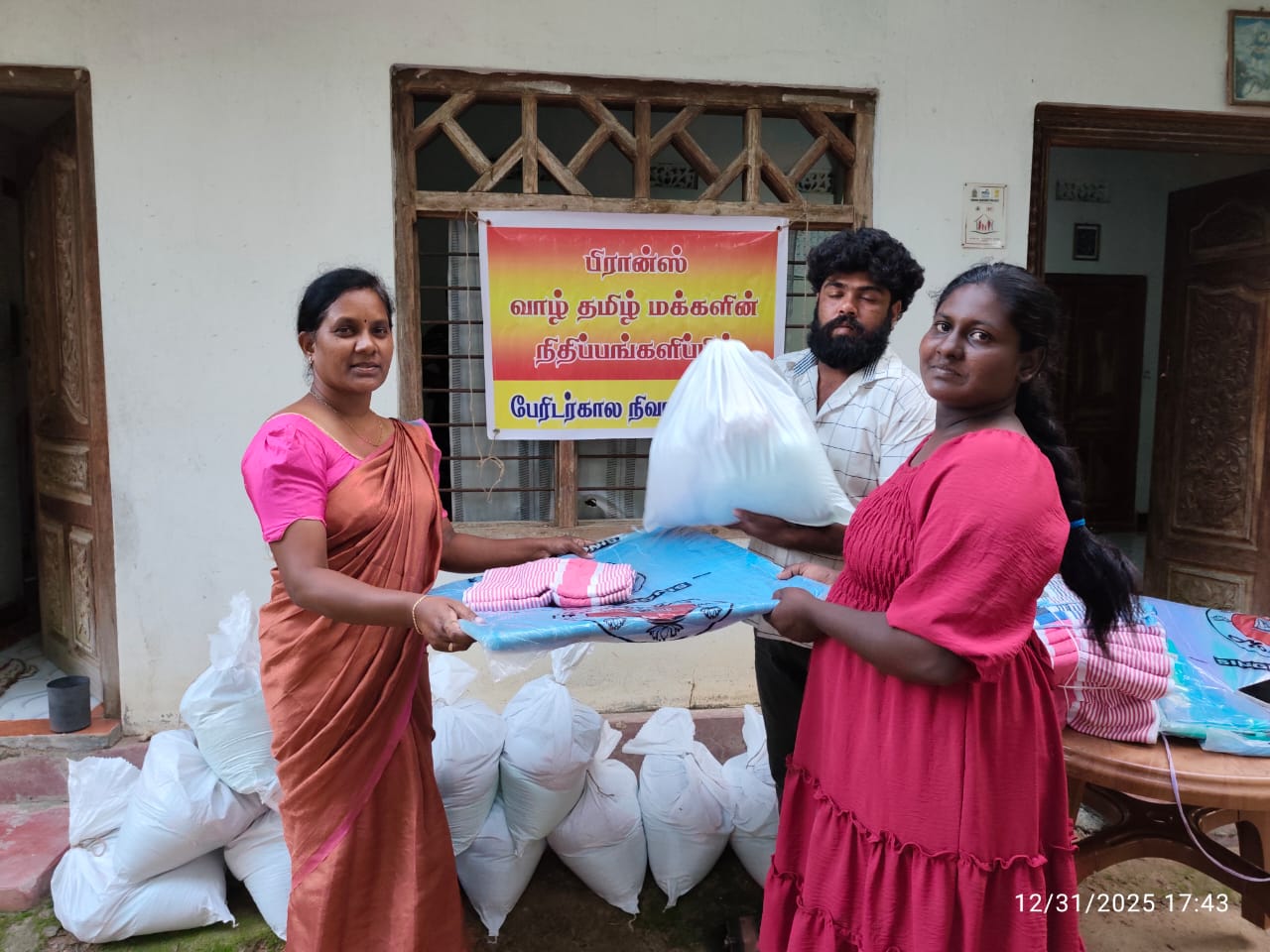 இயற்கைப் பேரிடரினால் பாதிக்கப்பட்ட எம் உறவுகளிற்கு, 31.12.2025 அன்று முல்லைத்தீவு மாவட்டத்தில் உள்ள முறுகண்டி – இந்துபுரம் கிராமம் கனகாம்பிகை குளத்தின் கீழ்பகுதியில் இருப்பதால் அப்பகுதி மக்கள் வெள்ளத்தினால் மிகவும் பாதிக்கப்பட்ட நிலையில் உள்ளனர். அவர்களில் தெரிவு செய்யப்பட்ட 50 குடும்பங்களுக்கு பிரான்ஸ் வாழ் தமிழ் மக்களின் பேராதரவோடு அரிசி, மா, பருப்பு, சோயா, கடலை, சீனி, தேயிலை, பனடோல், மற்றும் சவர்க்காரம் அடங்கிய உலருணவுப் பொதியும் வயோதிபர் மற்றும் சிறுவர்களுக்கான நுளம்புவலை போர்வை(பெட்சீட் ) என்பன 20 குடும்பங்களுக்கும் வழங்கிவைக்கப்பட்டது. இப்பேருதவிகளை வழங்கிய பிரான்ஸ் வாழ் தமிழ் உறவுகளுக்கு முறுகண்டி இந்துபுரம் பிரதேச மக்கள் தங்களுடைய மனம்நிறைந்த நன்றியினைத் தெரிவித்துக் கொண்டதோடு, பல குடும்பங்கள் இன்றும் பாதிக்கப்பட்ட நிலையில் இருப்பதால் தொடர்ந்துவரும் காலங்களிலும் புலம்பெயர் தமிழ் உறவுகளின் ஆதரவை கேட்டு நிற்கின்றனர்.