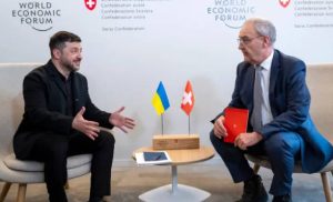 டாவோஸ் உலகப் பொருளாதார மன்றக் கூட்டத்தில் கலந்துகொண்டுள்ள உக்ரைன் ஜனாதிபதியான வோலோடிமிர் ஜெலன்ஸ்கி, சுவிட்சர்லாந்தின் ஜனாதிபதியான கய் பார்மலினை சந்தித்துப் பேசினார்.