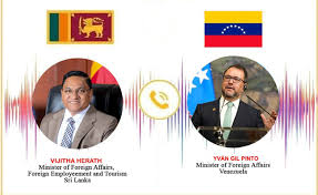 இலங்கை வெளிவிவகார அமைச்சர் விஜித ஹேரத் மற்றும் வெனிசுலா வெளிவிவகார அமைச்சர் இவான் கில் பின்டோ (Yván Gil Pinto) இடையில் விசேட தொலைபேசி உரையாடல் ஒன்று இடம்பெற்றதாக அமைச்சர் விஜித ஹேரத் தனது X தளத்தில் பதிவிட்டுள்ளார்.