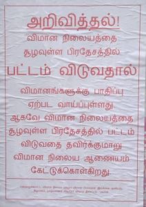 குறித்த அறிவுறுத்தல் தொடர்பான சுவரொட்டிகள் விமான நிலையத்தை சூழவுள்ள , காங்கேசன்துறை , மாவிட்டபுரம் , வறுத்தலை விளான் , பலாலி , மயிலிட்டி உள்ளிட்ட பிரதேசங்களில் ஒட்டப்பட்டுள்ளதுடன் , அது தொடர்பிலான அறிவுறுத்தல்கள் அப்பகுதியில் ஒலிபெருக்கிகள் மூலமும் அறிவிக்கப்பட்டுள்ளது.