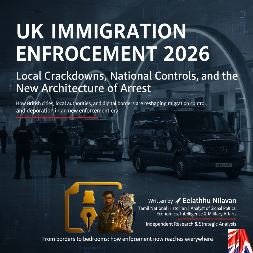 2026-இல் குடிவரவு அமலாக்கம் நடைமுறையில் எவ்வாறு செயல்படுகிறது, ஏன் பல பிரித்தானிய நகரங்கள் கட்டுப்பாடுகளைத் தீவிரப்படுத்துகின்றன, மேலும் மிக முக்கியமாக சட்டவிரோதமாகத் தங்கியிருப்பவர்களையும், அனுமதியின்றி பணிபுரிபவர்களையும் அரசு எவ்வாறு கண்டறிந்து கைது செய்கிறது என்பதையே இந்தக் கட்டுரை விரிவாக ஆராய்கிறது.