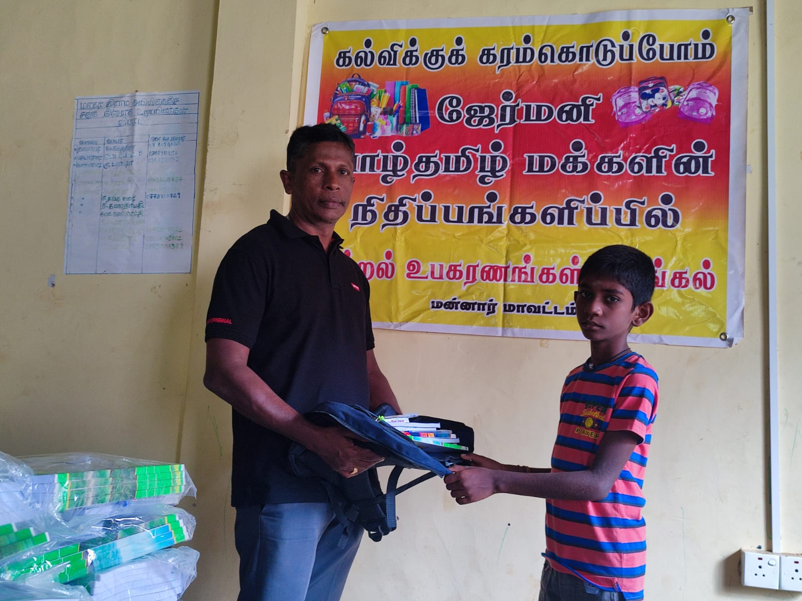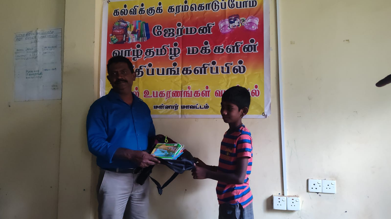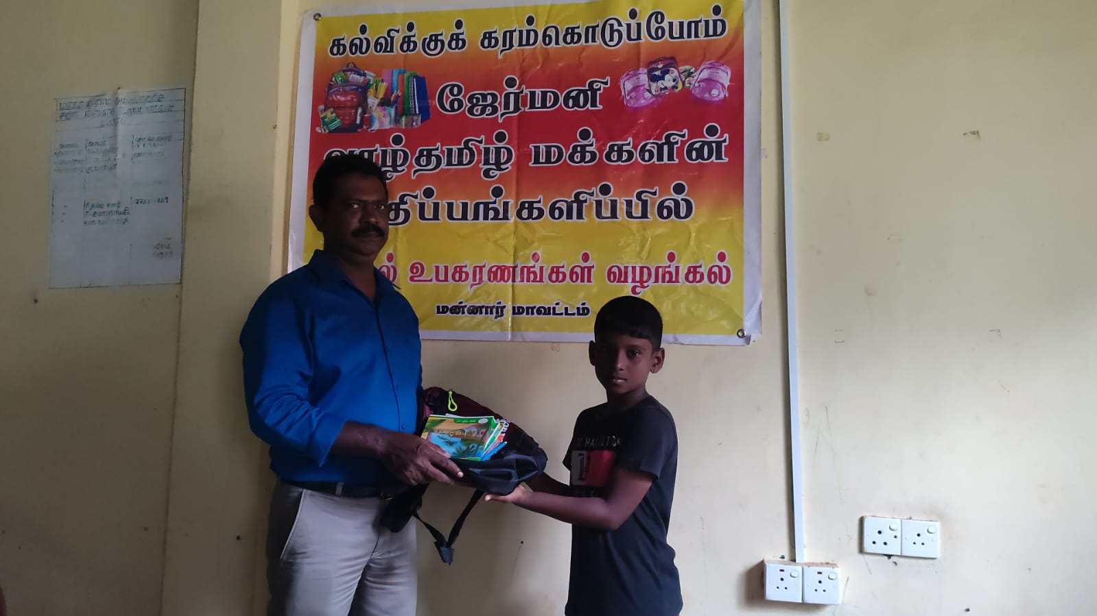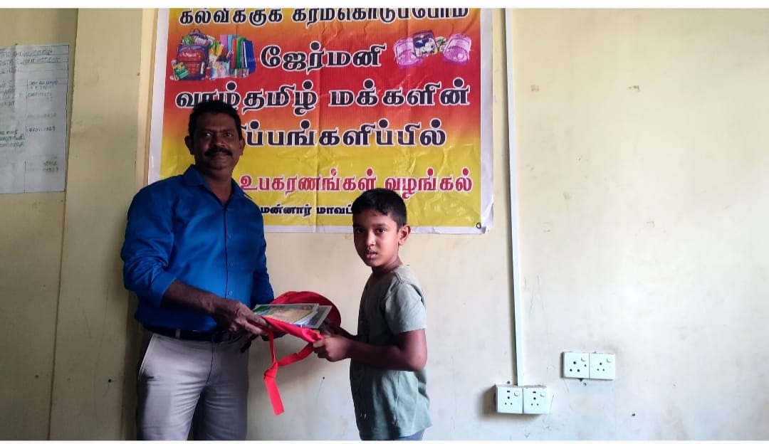 மன்னார் மாவட்டத்தின் மடு பிரதேசத்திற்குட்பட்ட பாலம்பிட்டி மற்றும் தட்ச்சனாமருதமடு ஆகிய கிராமங்களைச் சேர்ந்த மாணவர்கள் கடந்த மாதங்களில் ஏற்பட்ட வெள்ள அனர்த்தத்தால் பாடசாலை உபகரணங்கள் அனைத்தும் பாதிக்கப்பட்ட நிலையில் உள்ள வறுமைக்குட் பட்ட 100 மாணவர்களுக்கு யேர்மனி வாழ் தமிழ் மக்களின் நிதிப்பங்களிப்பில் 25.01.2026 அன்று கற்றல் உபகரணங்கள் வழங்கிவைக்கப்பட்டது. இதில் புத்தகப்பை, கொப்பி, கணிதஉபகரணப்பெட்டி,பென்சில், பேனா, அழிறப்பர், என்பன வழங்கிவைக்கப்பட்டது. இவற்றை வழங்கிவைத்த யேர்மனி வாழ் தமிழ் மக்களுக்கு பாலம்பிட்டி மற்றும் தட்சனார்மருதமடு கிராம மாணவர்களும் பெற்றோர்களும் தமது நன்றியினை தெரிவித்துக்கொண்டனர்.