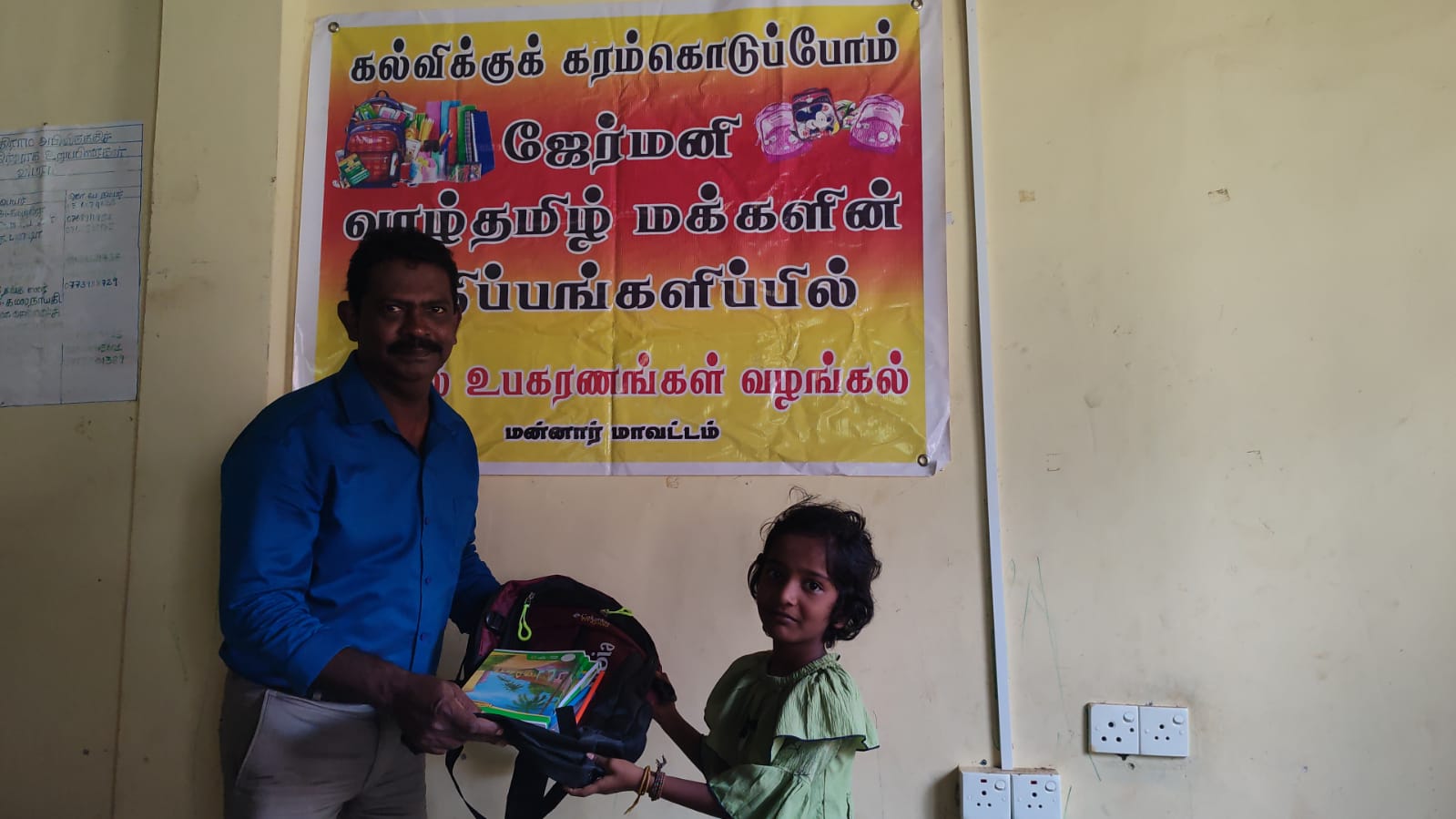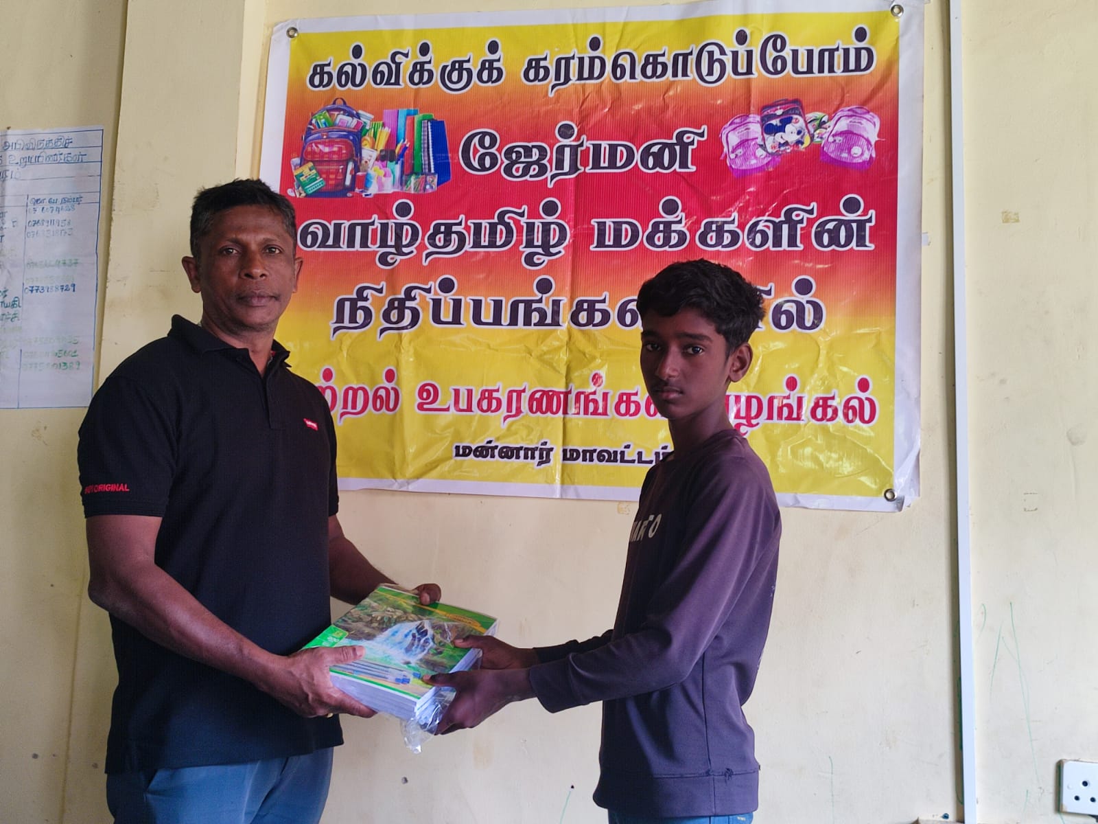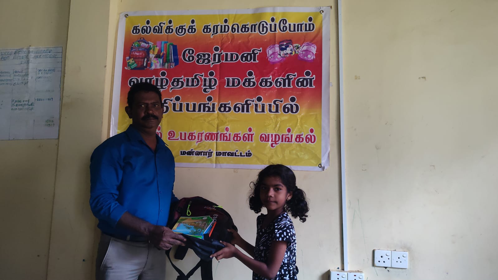 மன்னார் மாவட்டத்தின் மடு பிரதேசத்திற்குட்பட்ட பாலம்பிட்டி மற்றும் தட்ச்சனாமருதமடு ஆகிய கிராமங்களைச் சேர்ந்த மாணவர்கள் கடந்த மாதங்களில் ஏற்பட்ட வெள்ள அனர்த்தத்தால் பாடசாலை உபகரணங்கள் அனைத்தும் பாதிக்கப்பட்ட நிலையில் உள்ள வறுமைக்குட் பட்ட 100 மாணவர்களுக்கு யேர்மனி வாழ் தமிழ் மக்களின் நிதிப்பங்களிப்பில் 25.01.2026 அன்று கற்றல் உபகரணங்கள் வழங்கிவைக்கப்பட்டது. இதில் புத்தகப்பை, கொப்பி, கணிதஉபகரணப்பெட்டி,பென்சில், பேனா, அழிறப்பர், என்பன வழங்கிவைக்கப்பட்டது. இவற்றை வழங்கிவைத்த யேர்மனி வாழ் தமிழ் மக்களுக்கு பாலம்பிட்டி மற்றும் தட்சனார்மருதமடு கிராம மாணவர்களும் பெற்றோர்களும் தமது நன்றியினை தெரிவித்துக்கொண்டனர்.