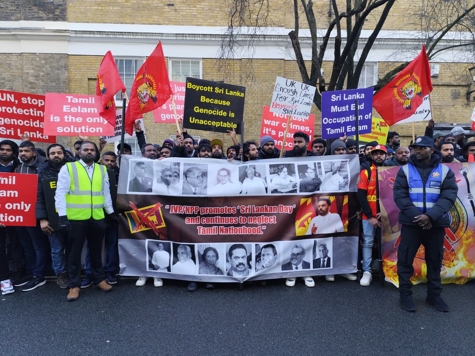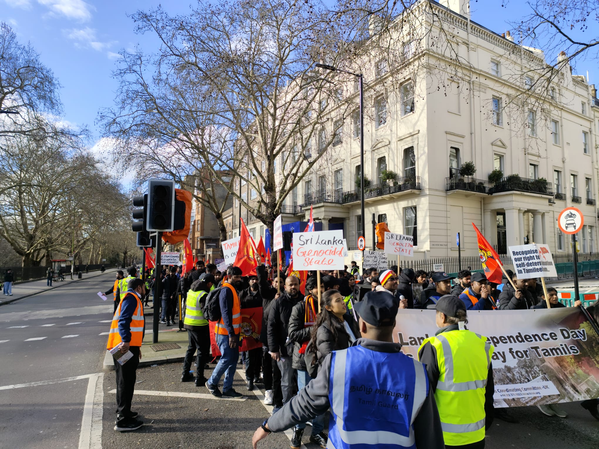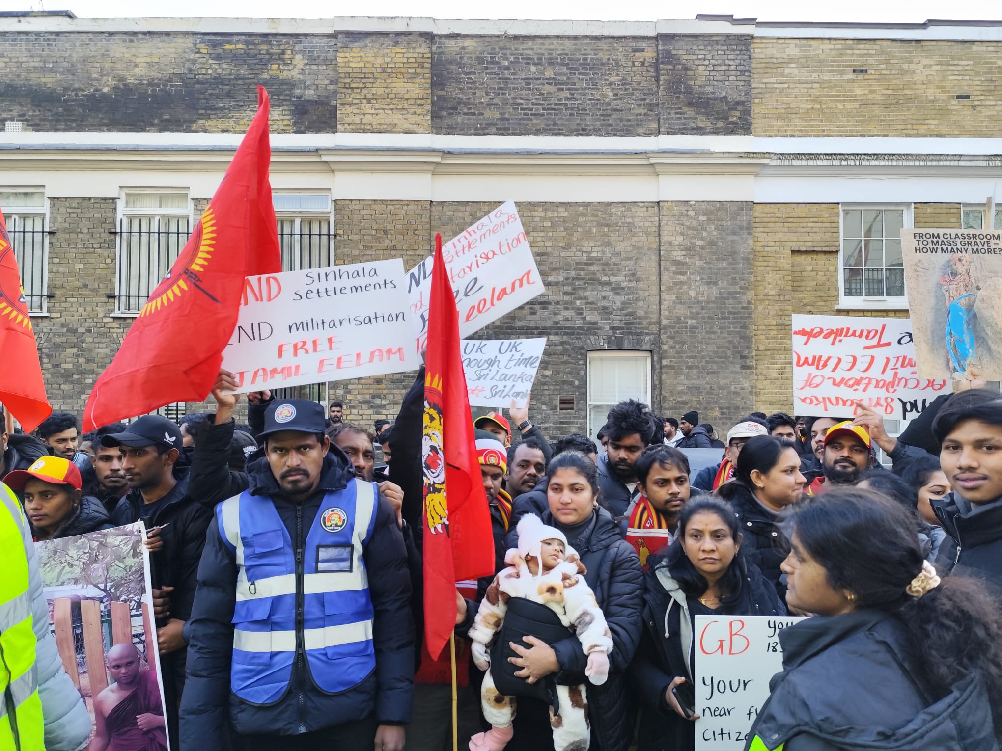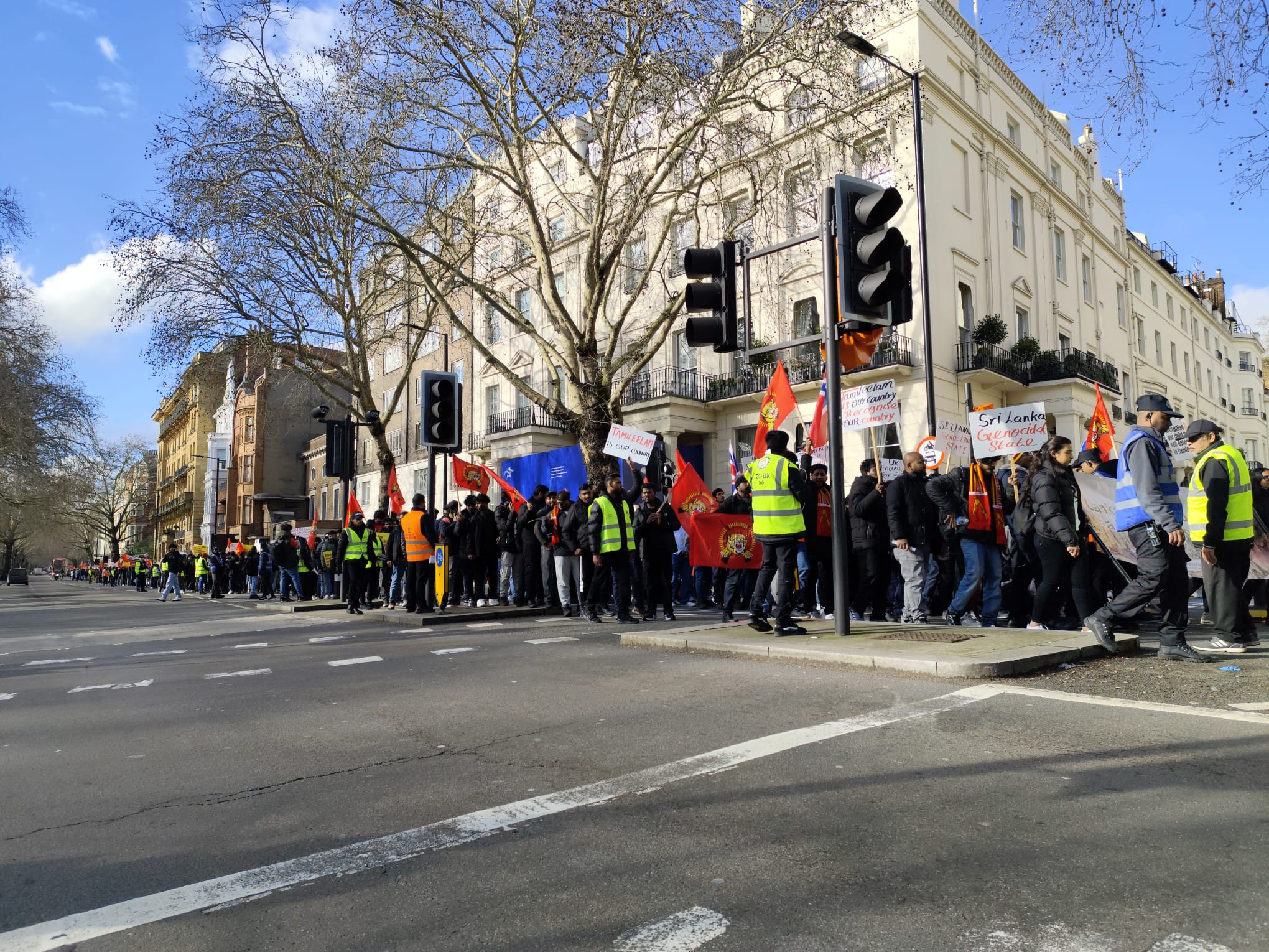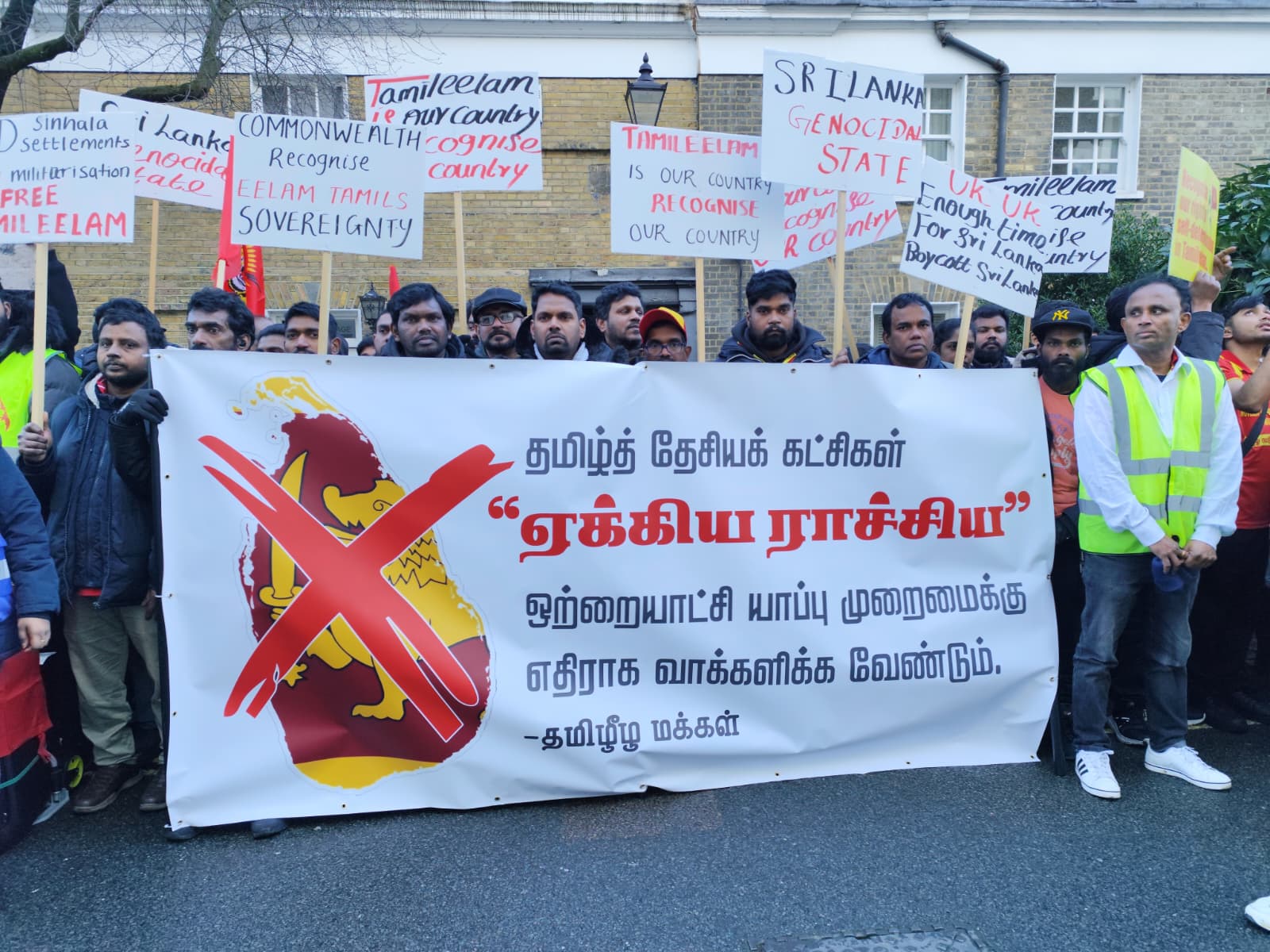 சிங்கள அரச தூதரகத்தின் முன் வானுயர ஒலித்திக்கொண்டிருக்கும் கொட்டொலிகள் மத்தியில் மாபெரும் போராட்டம் ஆரம்பித்துள்ளது.இப்போராட்டம் பிரித்தானிய மன்னர் மாளிகை நோக்கி நகரவுள்ளது.