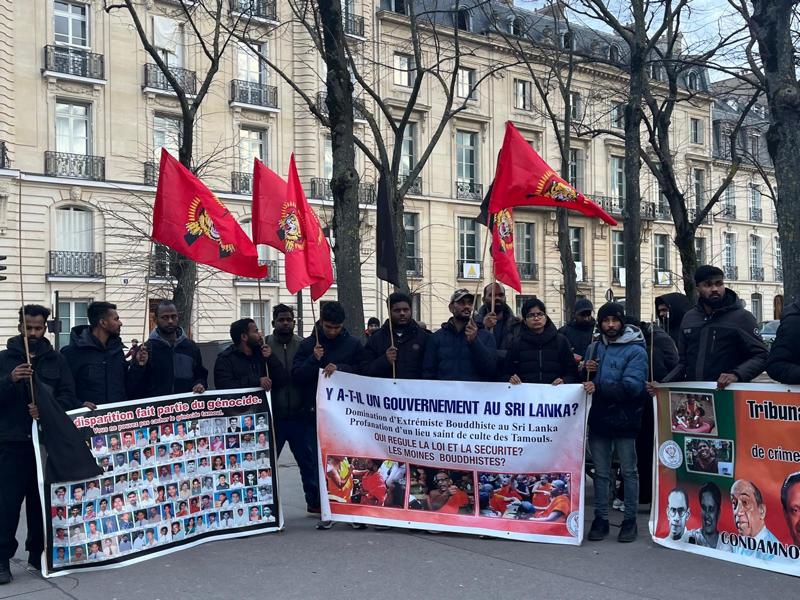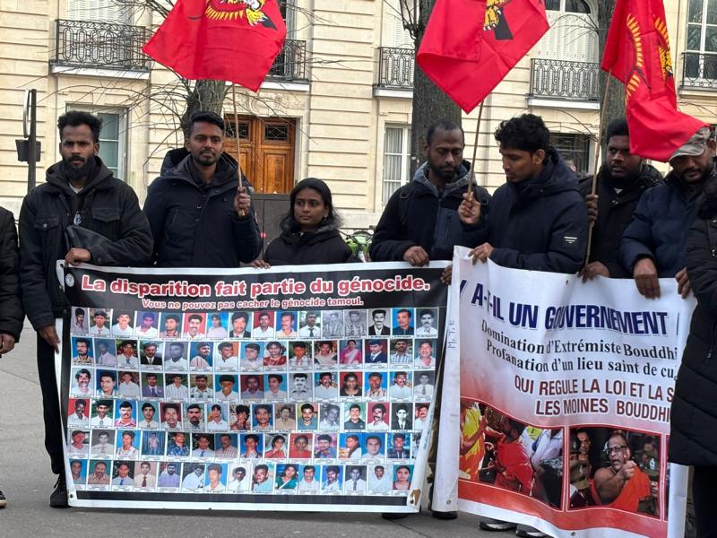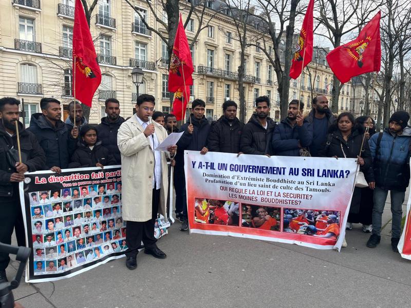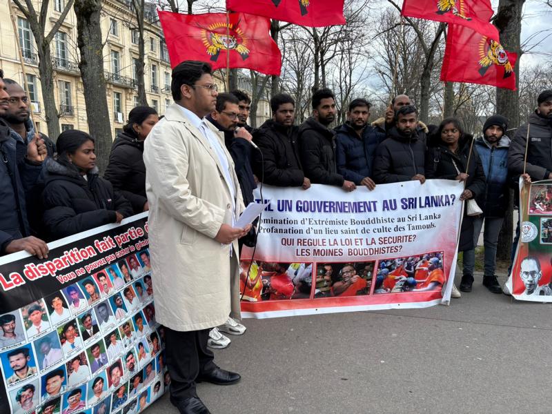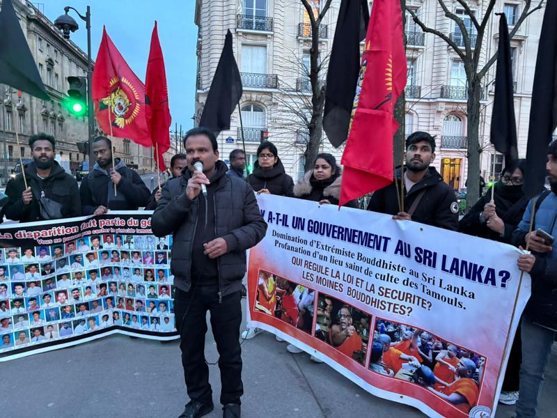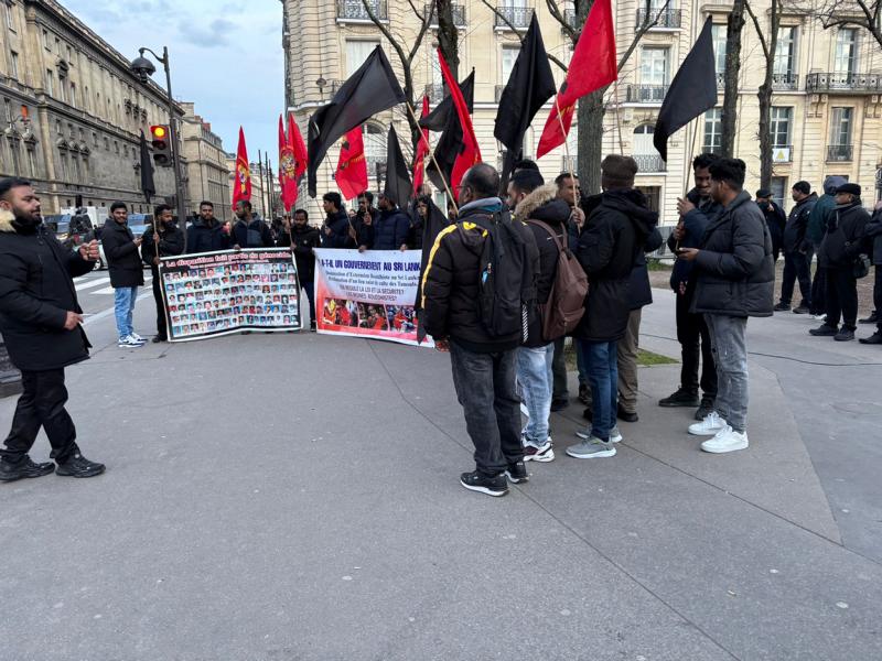 சிறிலங்காவின் சுதந்திர நாள் தமிழினத்தின் கரிநாளாகக் கொள்ளும் கவனயீர்ப்புப் போராட்டம் இன்று 04.02.2026 புதன்கிழமை பிற்பகல் 1700 மணிக்கு பாரிசு நகரின் மத்தியில் பிரான்சு நாடாளுமன்றம் அமைந்துள்ளபகுதியில் இடம்பெற்றது.தமிழர் ஒருங்கிணைப்புக் குழு -பிரான்சு அரசியல் பிரிவு ஏற்பாடு செய்த இந்நிகழ்வில் அகவணக்கம் செலுத்தப்பட்டதுடன், பிரெஞ்சு மற்றும் தமிழ் மொழியில் சிறிலங்கா அரசின் சுதந்திர நாளை நாம் ஏன் கரிநாளாகக் கடைப்பிடிக்கவேண்டும் என்பதன் நோக்கம் பற்றிய உரைகள் இடம்பெற்றன.பிரான்சில் சீரற்ற காலநிலை நிலவுகின்ற போதும் அதற்கு மத்தியில் பலரும் கலந்துகொண்டு கைகளில் தமிழீழத் தேசியக் கொடி மற்றும் கறுப்புக் கொடிகளை ஏந்தித் தமது உணர்வை வெளிப்படுத்தியிருந்தனர்.நிறைவாகத் “தமிழரின் தாகம் தமிழீழத் தாயகம்” என்ற தாரக மந்திரத்துடன் கவனயீர்ப்புப் போராட்டம் நிறைவடைந்தது..