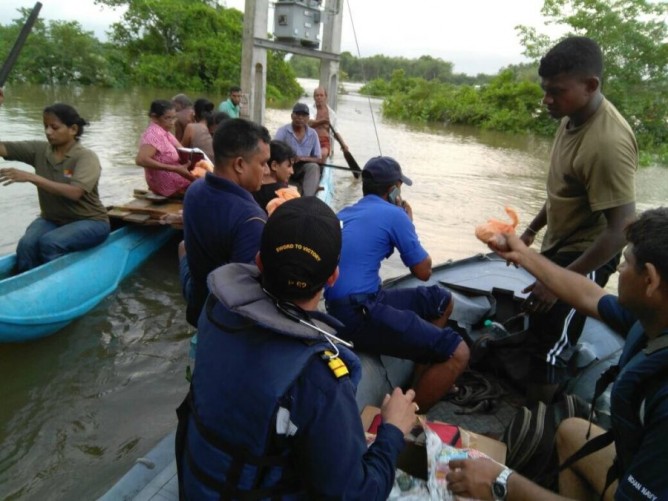 இலங்கையில் வெள்ள மற்றும் மண் சரிவினால் பாதிக்கப்பட்ட மக்களை மீட்கும் நடவடிக்கையில் இந்தியக் கடற்படையினர் ஈடுபட்டுள்ளனர்.