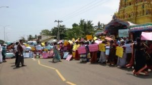 இன்று காலை பத்து முப்பது மணியளவில் சர்வமத பிரார்த்தனையுடன் தென்னிலங்கையில் ஏற்பட்ட வெள்ள அனர்த்த்தினால் இறந்த மக்களுக்கும் போரின் போது கொல்லப்பட்ட மக்களுக்கும் அஞ்சலி செலுத்திய பின்னர் ஏ9 பிரதான வீதிக்கு வந்த காணாமல் ஆக்கப்பட்டவர்களின் உறவினர்கள் வீதியில் அமர்ந்திருந்து போராட்டத்தில் ஈடுப்பட்டனர்.