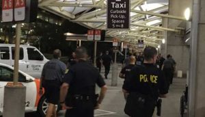 இருப்பினும் அந்த நபர் துப்பாக்கியை கீழே போடாமல் தொடர்ந்து அங்கு மறைந்துள்ளார். இந்த காட்சிகளை சில பயணிகள் வீடியோவாக எடுத்து சமூக வலைதளங்களில் பதிவு செய்ய ஆரம்பித்தனர். இதனால், விமான நிலையத்திற்கு வெளியே அதிகம் பேர் கூட ஆரம்பித்தனர். இப்படியாக சுமார் 2 மணி நேரமாக அங்கு குழப்பமான சூழ்நிலையே நீடித்தது.