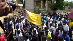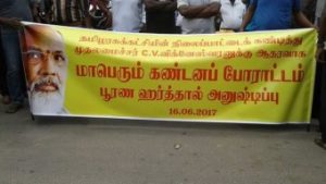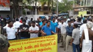 வடக்கு முதல்வருக்கு எதிராக கொண்டுவரப்பட்டுள்ள நம்பிக்கையில்லா தீர்மானத்துக்கு எதிர்ப்பு தெரிவித்து இன்றைய தினம் தமிழ் மக்கள் பேரவையினரால் கர்த்தால் அனுஸ்டிக்கப்படுகின்ற நிலையில் இன்றைய தினம் நல்லூர் ஆலயத்திற்கு முன்னால் முதல்வருக்கு ஆதரவாக போராட்டம் ஒன்று இடம்பெற்றது .ஆயிரக்கணக்கான இளைஞர்கள் பங்குபற்றிய இந்த எதிர்ப்பு போராட்டம் நடைபவனியாக சென்று முதல்வரின் வாசஸ்தலம் வரை இடம்பெற்றது.