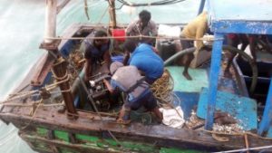 ராமநாதபுரம்மாவட்டம் மண்டபத்திலிருந்து நேற்று தங்கச்சிமடத்தைச் சேர்ந்த அருமைநாதன் சொந்தமான விசைப்படகில் கடலுக்குமீன்பிடிக்கச் சென்ற 5 மீனவர்கள் இன்று அதிகாலை நெடுந்தீவு அருகே மீன்பிடித்துக் கொண்டிருந்தபோது அப்பகுதிக்கு வந்த இலங்கை கடற்படையினர் எல்லை தாண்டிய குற்றத்திற்காக 5 மீனவர்களையும் படகு ஒன்றினையும் கைது செய்து விசாரணை மேற்கொண்டு வருகின்றனர்.இன்று மதியம் நீரியல் வள திணைக்களத்திடம் ஒப்படைக்கப்படவுள்ளனர்.