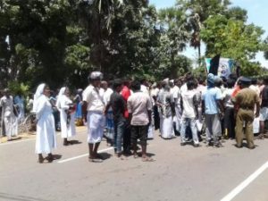 முந்நூறிற்கும் மேற்ப்பட்ட கிராமமக்கள்மதத் தலைவர்கள் மற்றும் பொது அமைப்புகள் நாச்சிக்குடா சந்தியில் இருந்து முழங்காவில் பொலிஸ் நிலையம் வரை பேரணியாகச் சென்று பொலிஸ் நிலையத்தை முற்றுகை இட்டனர்