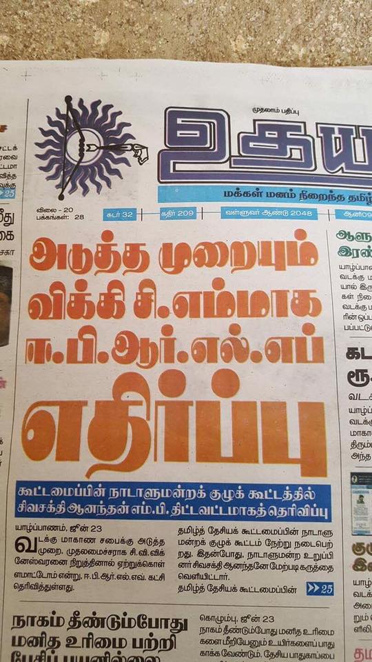 அறிந்தோ அறியாமலோ உதயன் பத்திரிகை ஒரு விடயத்தைத் தெளிவுபடுத்தியுள்ளது. இதுவரை காலமும் கூட்டமைப்பின் பாராளுமன்றக் குழுக்கூட்ட விபரங்களை ஈபிஆர்எல்எப்தான் ஊடகங்களுக்குத் தெரிவிக்கிறது என்ற குற்றச்சாட்டு எம்மீது சுமத்தப்பட்டிருந்தது. இன்று உதயன் அவசர அவசரமாக முற்றிலும் உண்மைக்கு மாறாக திரிபு படுத்திய ஒரு செய்தியை வெளியிட்டதன் மூலம் அந்தக் கருமத்தைத் தானே செய்துவந்துள்ளமை நிரூபணமாகியுள்ளது.