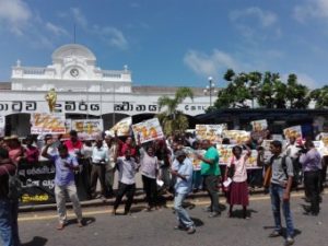 சம உரிமை இயக்கம் முன்னிலை சோஷலிச கட்சி மற்றும் கேப்பாபுலவு மக்கள் இணைந்து இன்றுகாலை 10.30 மணியளவில் கொழும்பு கோட்டை புகையிரத நிலையம் முன்பாக கவனயீர்ப்பு போராட்டம் ஒன்றை மேற்கொண்டனர்