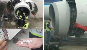 மூட நம்பிக்கையால் சீனாவில் விமானத்தின் இன்ஜினில் சில்லரை நாணயங்களை பெண் ஒருவர் வீசி எறிந்த சம்பவத்தால், விமானத்தில் இருந்த 150 பயணிகள் வெளியேற்றப்பட்டுள்ளனர்.