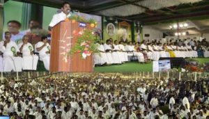 புரட்சித் தலைவருக்குப் பிறகு கழகத்தை ஒரு தாயைப்போல கட்டிக் காப்பாற்ற, புரட்சித் தலைவி அம்மா அவர்கள் எத்தனை இன்னல்களையும், அவமானங்களையும் சந்தித்தார் என்பதையும் தெரிந்து வைத்திருக்க வேண்டும். புரட்சித் தலைவர் அவர்களும், புரட்சித் தலைவி அவர்களும் சொன்ன அறிவுரைகளை எல்லாம் மந்திரங்களாக மனத்திலே இருத்தி ஒற்றுமையாக ஒருவருக்கொருவர் விட்டுக் கொடுத்து சகிப்புத்தன்மையோடு கழகத்தில் பணியாற்ற இந்த இனிய நேரத்திலே உறுதி எடுத்துக் கொள்ள வேண்டும் என்று நான் கேட்டுக் கொள்கின்றேன். இன்றிலிருந்து பேச்சைக் குறைத்துக் கொண்டு செயலில் இறங்குங்கள்.இவ்வாறு அவர் பேசினார்.