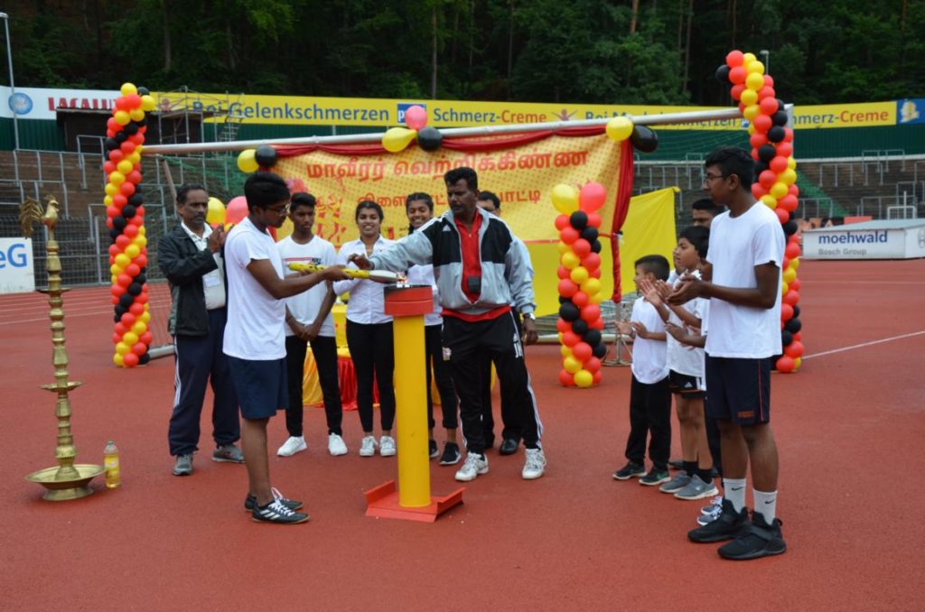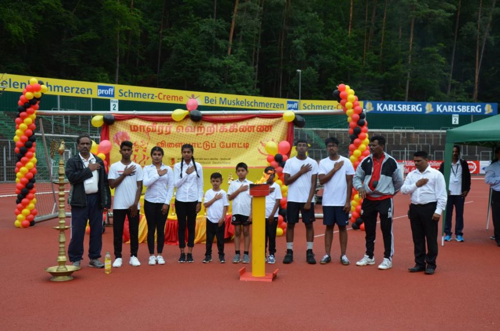தென்மேற்கு மாநில தமிழாலயங்களிடையேயான மாவீரர்வெற்றிக்கிண்ண விளையாட்டுப்போட்டிகள் 01.07.17 அன்று சனிக்கிழமை சார்லாந்து மாநிலத்தின் கொம்பேர்க் நகரத்தில் நடைபெற்றது.பொதுச்சுடர் ஏற்றலுடன் தொடங்கிய இவ்விளையாட்டுப் போட்டிகளில் பொதுச்சுடரினை கொம்பேர்க் நகரசெயற்பாட்டாளர் திரு.உதயமூர்த்தி அவர்கள் ஏற்றி வைக்க யேர்மன் நாட்டுக் கொடியினை விளையாட்டுக்கூட்டமைப்பின் பொறுப்பாளர் திரு.ராஜகுமாரன் ஏற்றி வைக்க தமிழீழதேசியக்கொடியினை சார்லாந்து மாநிலச்செயற்பாட்டாளர்களில் ஒருவரான திரு.பரணி அவர்கள் ஏற்றிவைத்தார். தமிழாலங்களின் கொடியினை கல்விக்கழகத்தின் விளையாட்டுத்துறைப் பொறுப்பாளர் திருமதி ஞானச்செல்வி திருபாலசிங்கம் ஏற்றிவைக்க அகவணக்கத்துடன் விளையாட்டுக்கள் ஆரம்பித்தான.