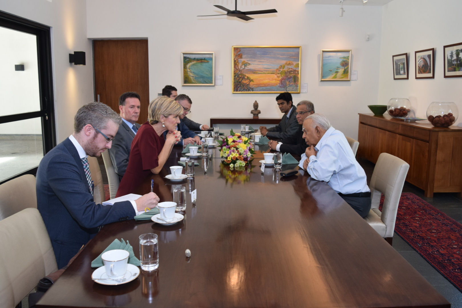 இலங்கை வந்துள்ள அவுஸ்திரேலிய வெளிவிவகார அமைச்சர் ஜூலி பிஷப், எதிர்கட்சி தலைவர் இரா.சம்பந்தனை சந்தித்தார்.