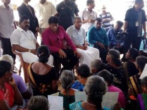 இன்று கிளிநொச்சிக்கு விஜயம் செய்த தேசிய மொழிகள்,தேசிய சகவாழ்வு கலந்துரையாடல் மற்றும் அரச கரும மொழிகள் அமைச்சர் மனோகணேசன் அவர்கள் இன்று பல்வேறு நிகழ்வுகளில் கலந்து கொண்டதுடன் காணாமல் ஆக்கப்பட்ட தமது உறவுகளை விடுவிக்க கோரி கடந்த இரண்டாம் மாதம் இருபதாம் திகதி ஆரம்பிக்கப்பட்ட கவனயீர்ப்பு போராட்டம் இன்று திங்கட்கிழமை பல பொய் வாக்குறுதிகளுக்கும் இடையில் நூற்றி அறுபத்தி இரண்டாவது நாளாக நடைபெற்றுக் கொண்டுள்ள நிலையில் அவ் மக்களையும் நேரில் சென்று பார்வையிட்டதுடன் நிலைமைகளையும் ஆராய்ந்தார்.இக் கலந்துரையாடலில் பாராளுமன்ற உறுப்பினர்களான சுமந்திரன் ,சிறிதரன் ஆகியோர் கலந்துகொண்டனர்.