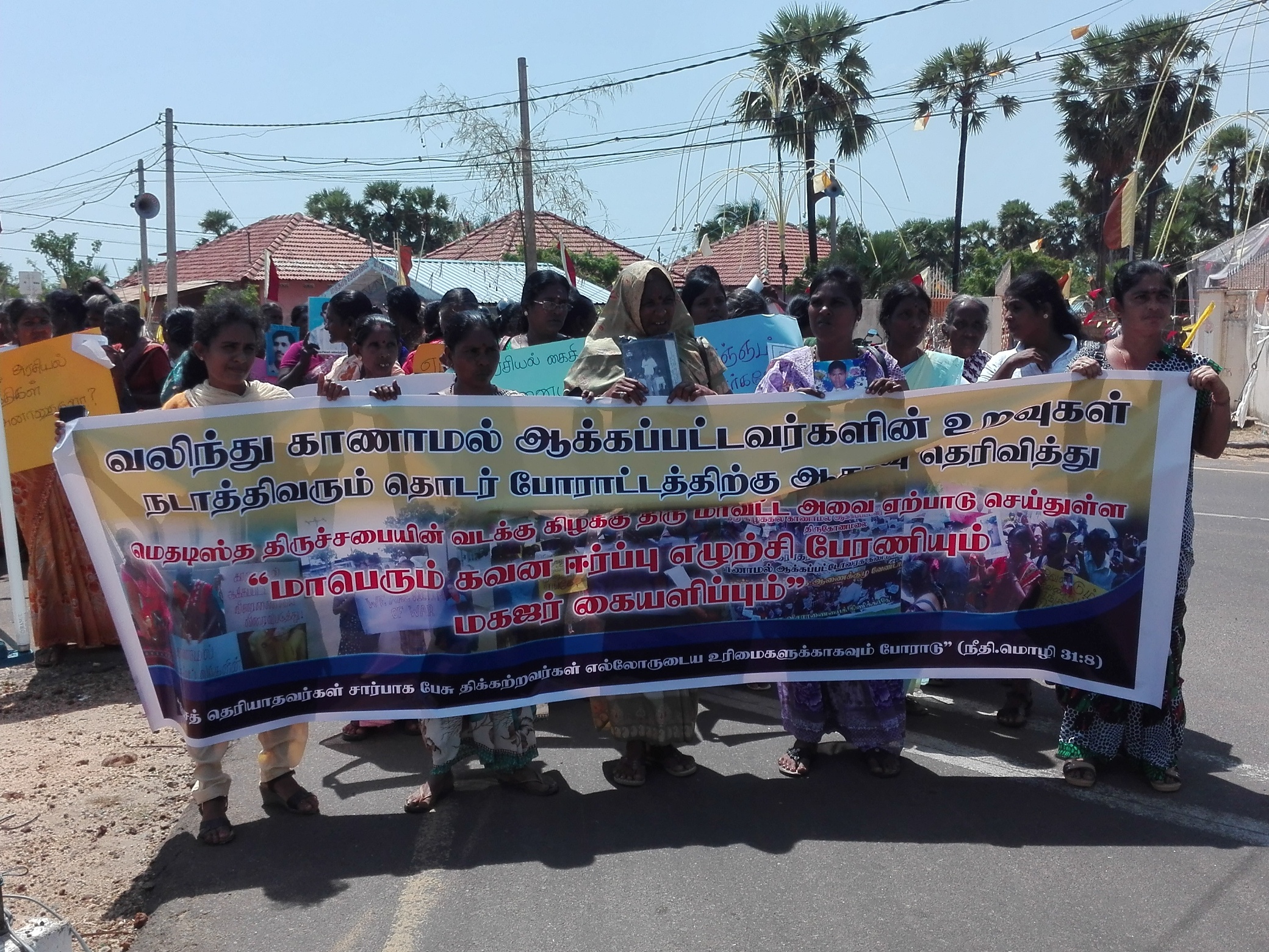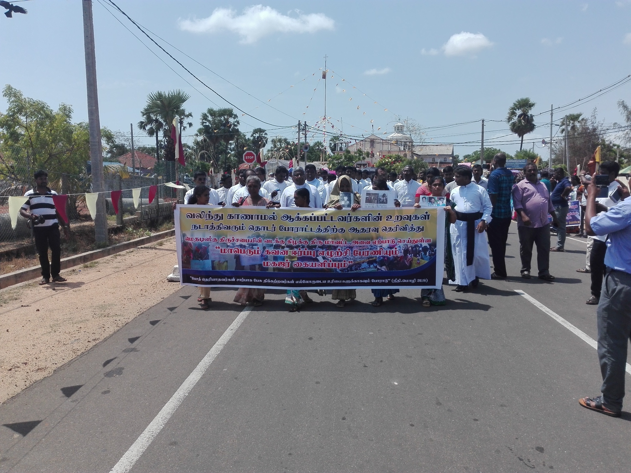 இதேவேளை, முல்லைத்தீவு மாவட்டத்தில் இராயப்பர் ஆலயத்துக்கு முன்னால் காலை 10 மணிஅளவில் ஆரம்பமான பேரணி மாவட்ட அரசாங்க அதிபர் அலுவலகம் வரையில் சென்றது.