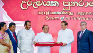 இந்த பெருமைமிகு பரிசை தேசிய உரிமையாக்கி, தேசிய நூதனசாலையில் வைப்பதற்காக ஜனாதிபதி மைத்ரிபால சிறிசேனவினால் கலாச்சார அலுவல்கள் அமைச்சர் எஸ்.பி.நாவின்னவிடம் ஒப்படைக்கப்பட்டது.
