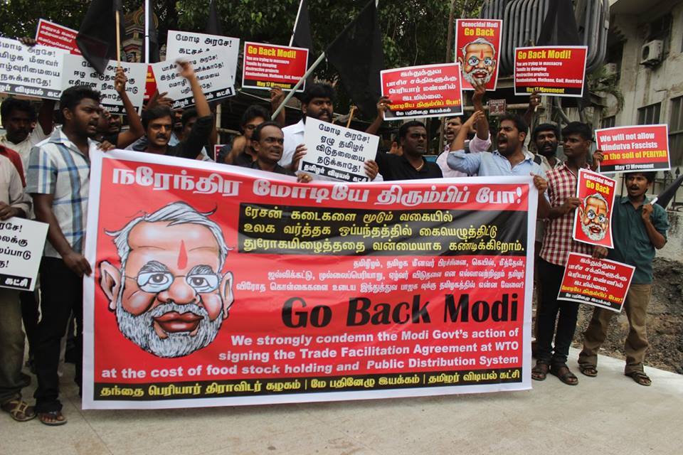 ரேசன் கடைகளை மூடப் போகிறார்கள் என்று 2016 ஏப்ரல் மாதம் பத்திரிக்கையாளர் சந்திப்பு வைத்து சொன்னோம்.மே மாதம் 4 ஆம் தேதி மீண்டும் பத்திரிக்கையாளர் சந்திப்பை நடத்தினோம்.WTO ஒப்பந்தத்தில் கையெழுத்திட்டதற்காக பிரதமர் மோடியின் தமிழ்நாடு வருகையை எதிர்த்து மே 6,2016 அன்று கருப்புக் கொடி ஆர்ப்பாட்டம் நடத்தினோம்.