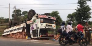 அம்பாறையிலிருந்து, கிளிநொச்சி நோக்கி செங்கற்களை ஏற்றிச் சென்ற ஹன்ரர் ரக பாரவூர்தியொன்று தடம்புரண்டு விபத்திற்குள்ளாகியுள்ளது.