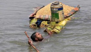 இதனால் சுமார் 1¼ கோடிக்கும் அதிகமான மக்கள் வெள்ளத்தில் சிக்கி பரிதவித்து வருகின்றனர். இவர்களுக்கு நிவாரண பொருட்கள் விமானப்படை ஹெலிகாப்டர்கள் மூலம் போடப்பட்டு வருகிறது.