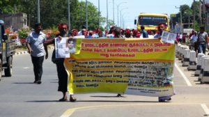 காணாமல் ஆக்கப்பட்டோரை மீட்டுத்தருமாறு வலியுறுத்தி தொடர் போராட்டம் இன்றுடன் நூற்றி தொண்ணூற்றிஇரண்டாவது நாளாக இடம்பெற்றுவரும் கிளிநொச்சி கந்தசுவாமி ஆலயத்திற்கு அருகில் ஆரம்பமான கவனயீர்ப்பு போராட்டம் ஊர்வலமாக கிளிநொச்சி மாவட்ட செயலகம் வரை மேற்கொள்ளப்பட்டது.