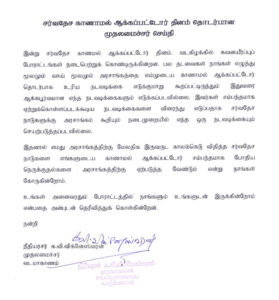 அத்துடன், காணாமல் ஆக்கப்பட்டோரின் உறவினர்கள் மேற்கொள்ளும் போராட்டங்களில் தொடர்ந்தும் அவர்களுடன் இருப்பதாகவும் அந்த அறிக்கையில் குறிப்பிடப்பட்டுள்ளது.