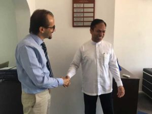 ரோஹிங்யா முஸ்லிம்களின் சமகால பிரச்சினைகள் குறித்து ஐக்கிய நாடுகள் சபையின் புலம்பெயர்ந்தலுக்கான சர்வதேச அமைப்பின் இலங்கை மற்றும் மாலைதீவுக்கான தலைமை அதிகாரி ஜுசெப்பே க்ரொசெட்டியை கொழும்பில் அமைந்துள்ள அவரது அலுவலகத்தில் இன்று புதன்கிழமை நேரில் சந்தித்து கலந்துரையாடிய இராஜாங்க அமைச்சர் எம்.எல்.ஏ.எம்.ஹிஸ்புல்லாஹ், மேற்படி வேண்டுகோளை விடுத்திருந்தார்.