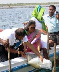 31-08-2017 கிளிநொச்சி பூநகரி பிரதேச செயலகத்தின் பள்ளிக்குடா கிராமசேவகர் பிரிவுக்குட்பட்டவளர்மதி கடல்தொழிலாளர் கூட்டுறவு சங்க அங்கத்துவர் பயனாளிகளுக்கு சிறு கைத்தொழில் அமைச்சினால் அட்டைப்பண்ணைக்கான கடல் அட்டைகள் சிறு கைத்தொழில் அமைச்சர் தயா கமகே மற்றும் சிறுவர் விவகார இராஜங்க அமைச்சர் விஜயகலா மகேஸ்வரன் ஆகியோரால் பயனாளிகளுக்கு வழங்கப்பட்டு கடல் பண்ணையிலும் விடப்பட்டது.