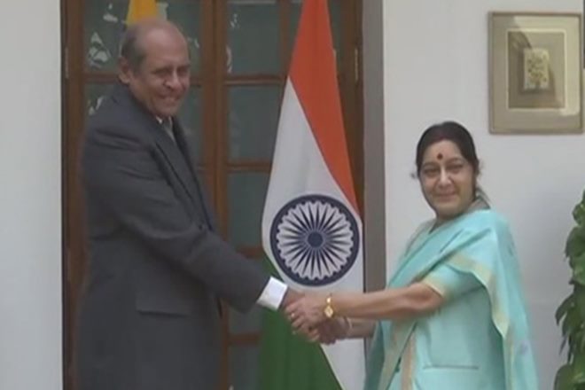 உத்தியோகபூர்வ விஜயம் ஒன்றை மேற்கொண்டு இந்தியா சென்றுள்ள வெளிவிவகார அமைச்சர் திலக் மாரபன இந்திய வெளிவிவகார அமைச்சர் சுஸ்மா சுவராஜை சந்தித்துள்ளார்.