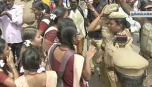 அவர்களை போலீசார் அப்புறப்படுத்த முயன்றனர். ஆனால், மாணவிகளின் போராட்டம் தீவிரமடையவே, காவல்துறை துணை ஆணையர் பேச்சுவார்த்தை நடத்தினார்.