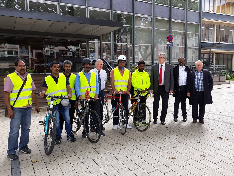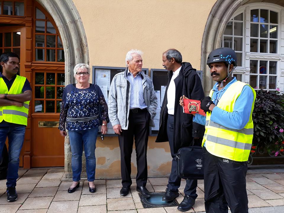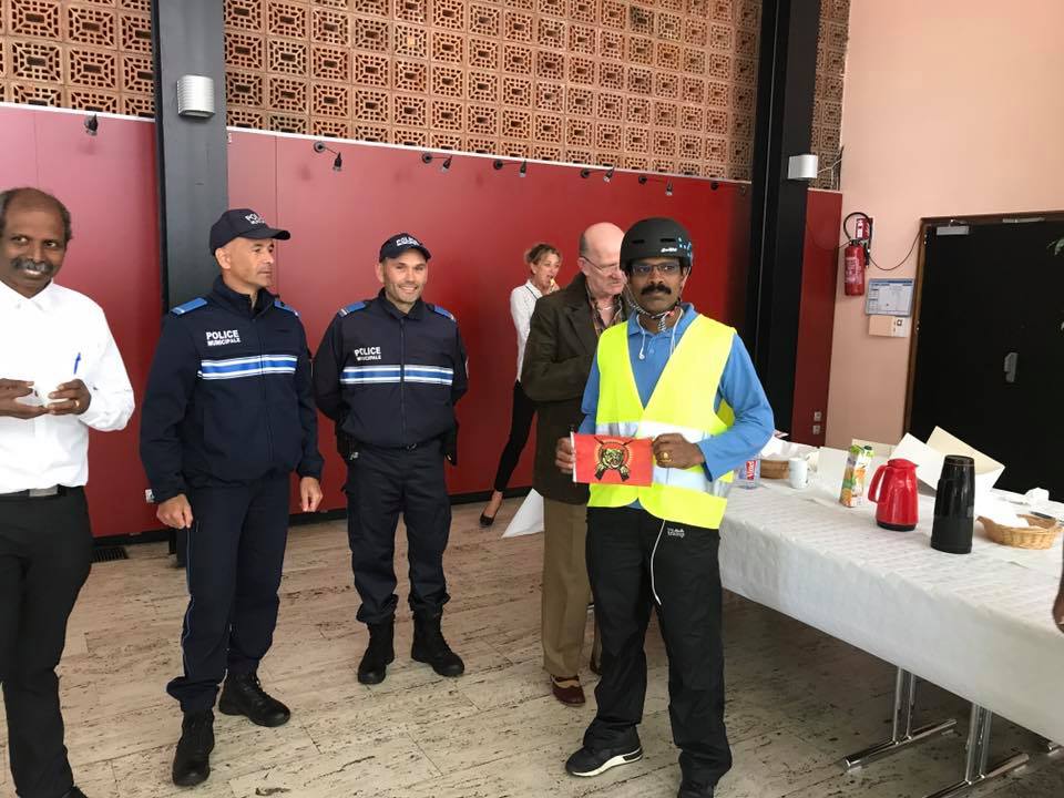 தமிழினப்படுகொலைக்கு நீதிவேண்டி 6ஆம் திகதி ஐரோப்பிய ஒன்றியத்திலிருந்து ஆரம்பிக்கப்பட்ட ஈருருளிப்பயணம் இயற்கையுடன் போராடி 500 கிலோ மீட்டர்களைத் தாண்டி இன்றை தினம் [11.09.2017] பிரான்சு நாட்டை வைந்தடைந்தது.SAREEGUEMINES மாநகர சபை முதல்வரும், நாடாளுமன்ற உறுப்பினரும் மனிதநேயப் பணியார்களை வரவேற்று சிற்றுண்டி , சுடுபானம், குளிர்பாணம், என்பன கொடுத்து தமிழ் மக்களுக்கு சிங்கள பேரினவாத அரசுகளால் இழைக்கபட்ட அநீதிகளையும், தமிழினப்படுகொலையையும், நடந்துகொண்டிருக்கும் தமிழ் இன அழிப்பையும் கேட்டறிந்து கொண்டதுடன்.