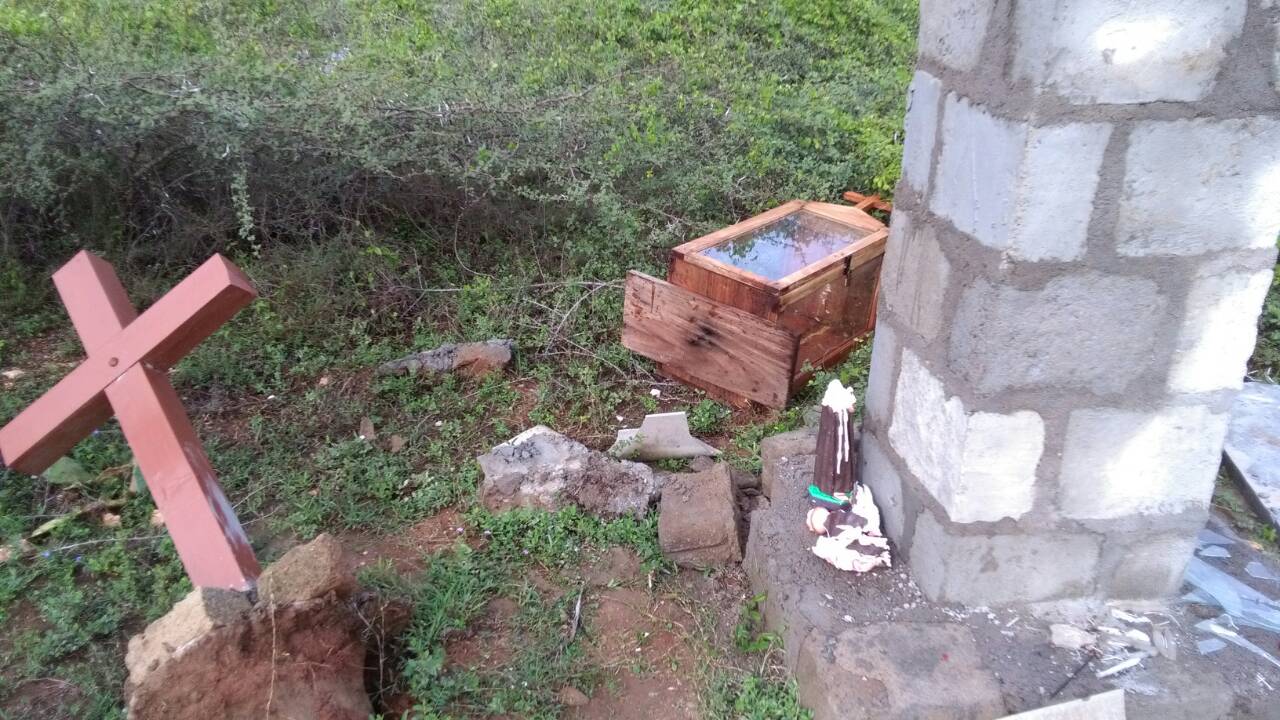 இன்று அதிகாலை அப்பகுதிக்கு வந்த விசமிகள் கண்ணாடிபெட்டியை உடைத்து உள்ளே இருந்த புனித அந்தோனியாரின் திருச் சொரூபத்தை வெளியில் எடுத்து உடைத்து சேதப்படுத்தியுள்ளனர்.