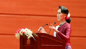மியான்மர் நாட்டு அரசின் தலைமை ஆலோசகராக இருக்கும் ஆங் சான் சூகி ரக்கினே மாநிலத்தில் நடைபெறும் மனித உரிமை மீறல்களுக்கு முதன்முறையாக கண்டனம் தெரிவித்துள்ளார்.